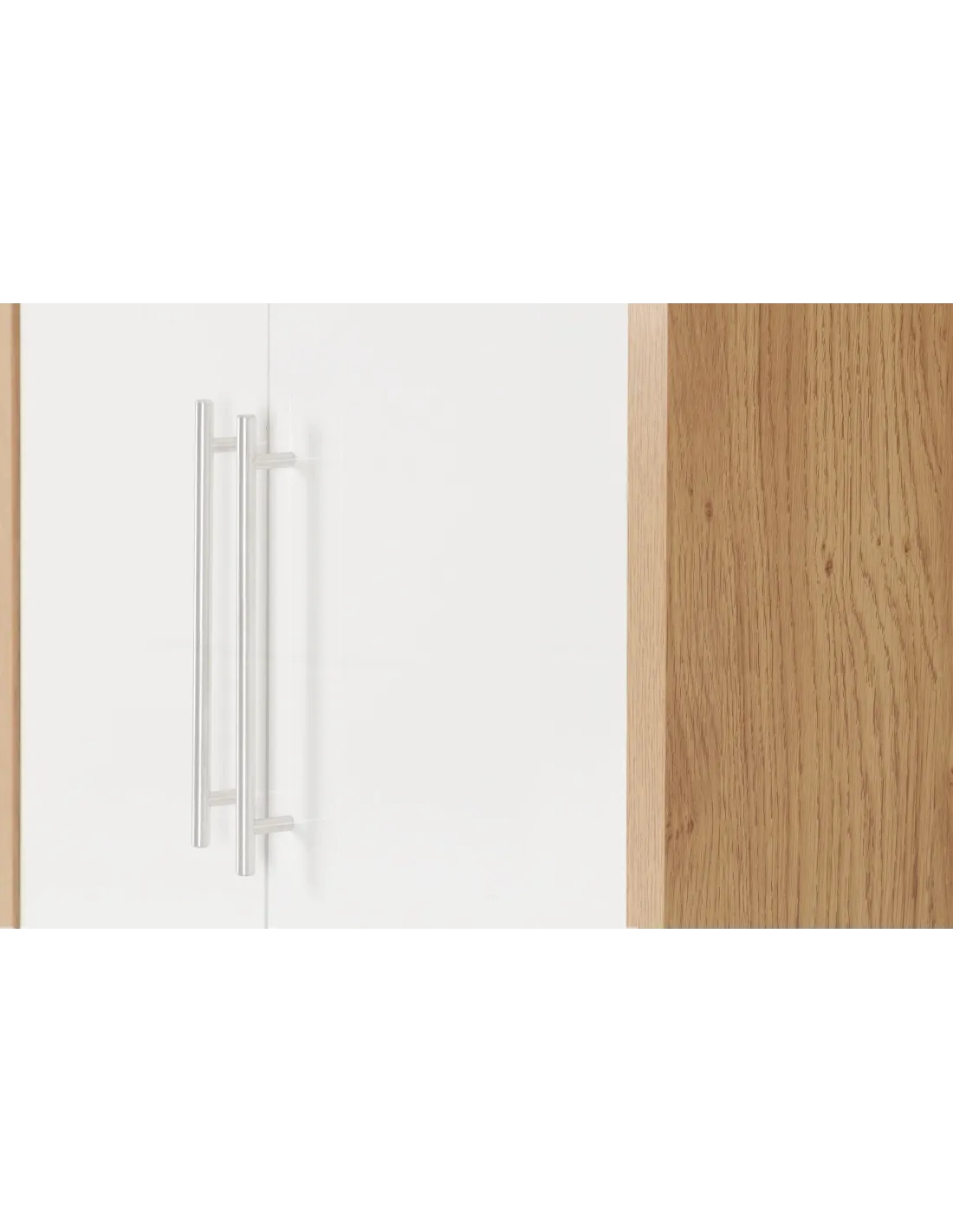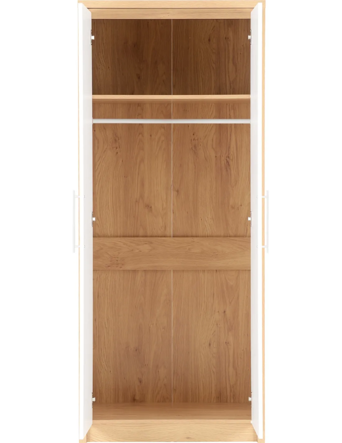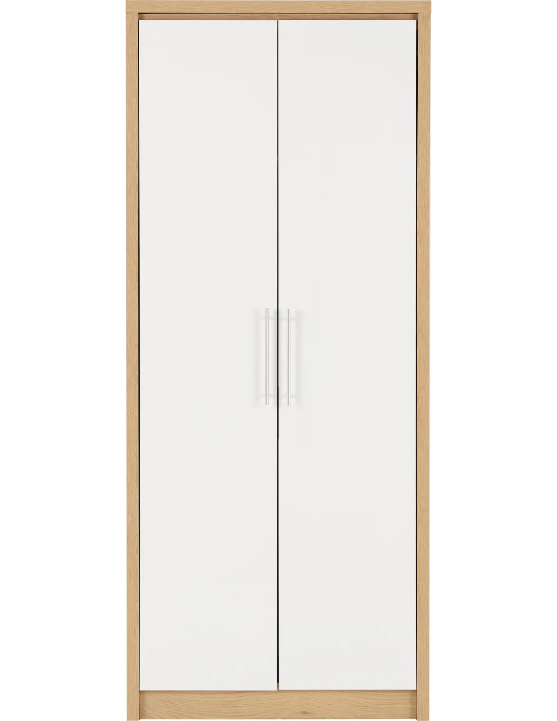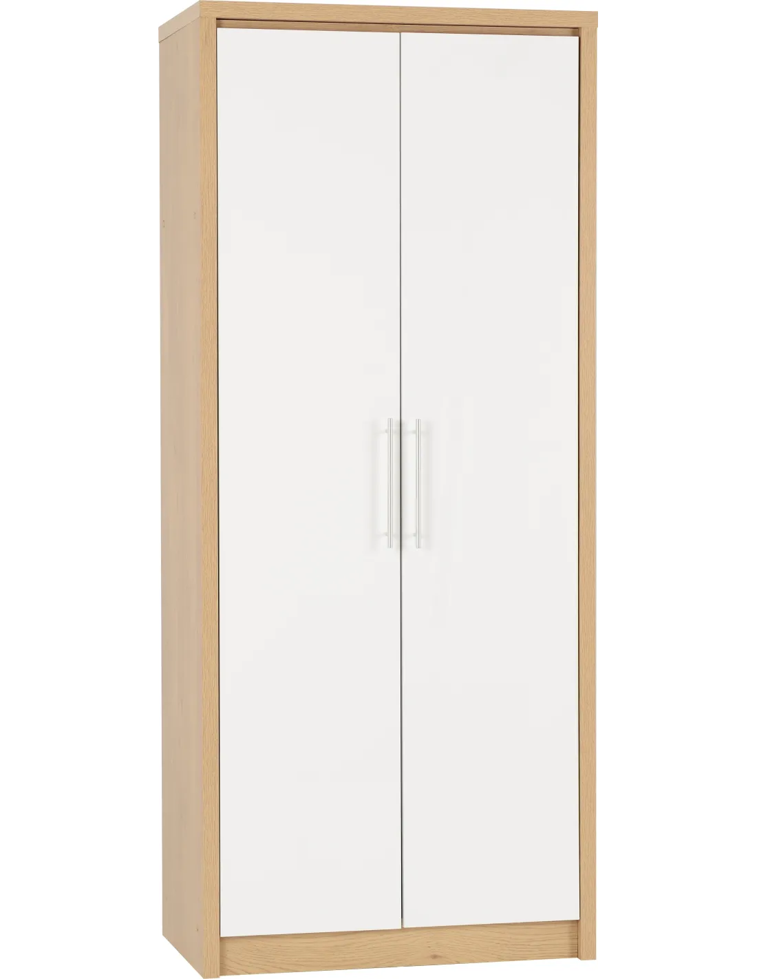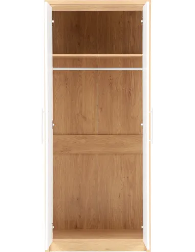 Seville 2 Door Wardrobe - White Gloss/Light Oak Effect Veneer