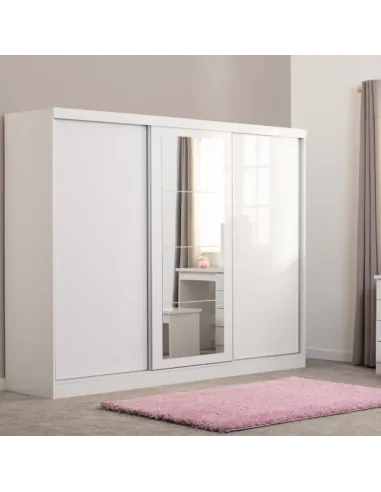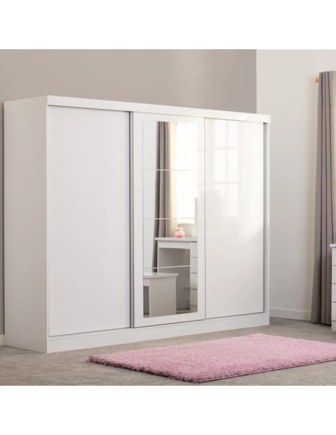 Nevada 3 Door Slider Wardrobe - White Gloss