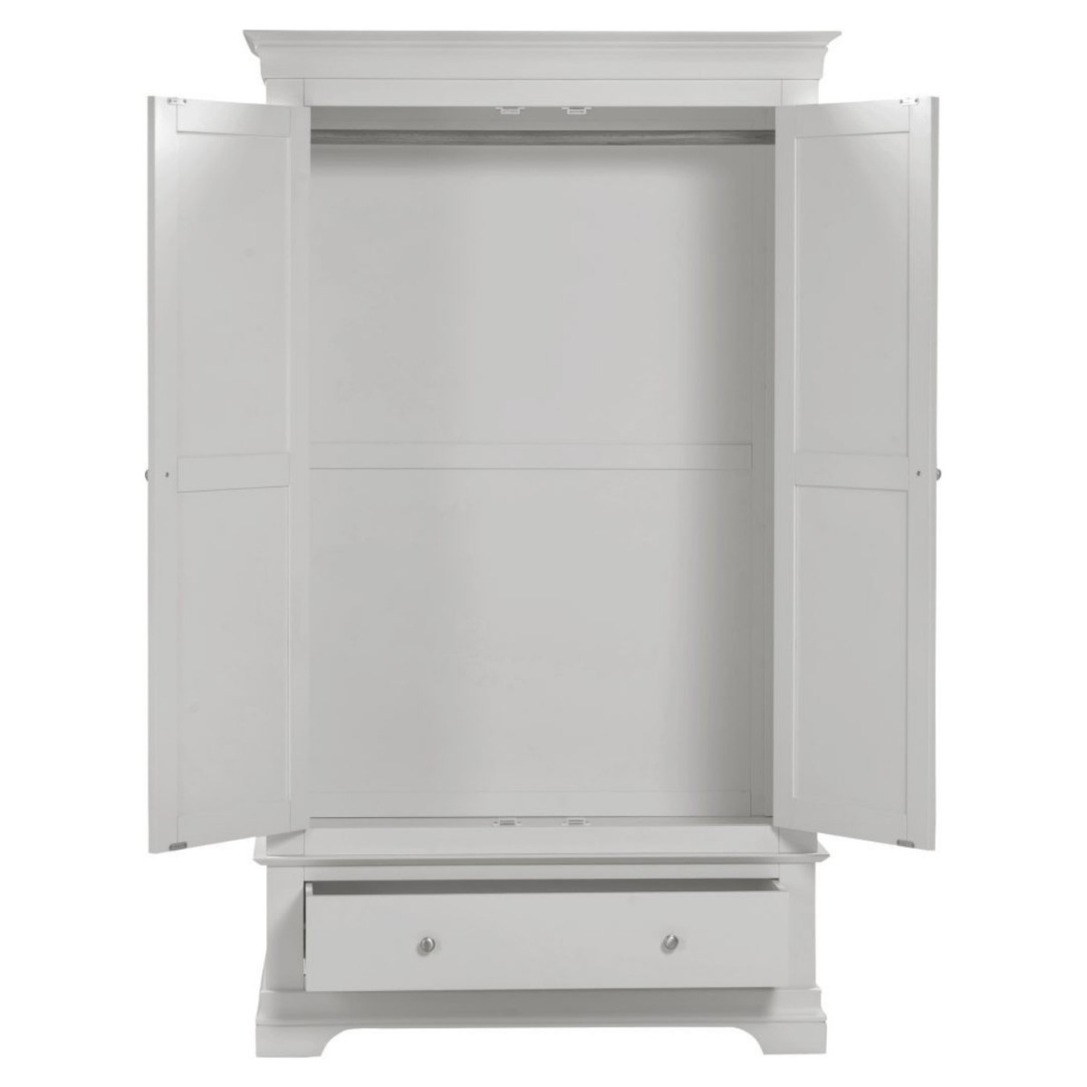 Reference: 100-101-232The Bordeaux 2 Door Wardrobe is ideal for smaller rooms or as a guest wardrobe. With a choice of ivory or pebble grey finish, this piece delivers essential hanging space in a stylish, space-saving design. Beautifully detailed and built to last, it’s the perfect blend of form and functionality.