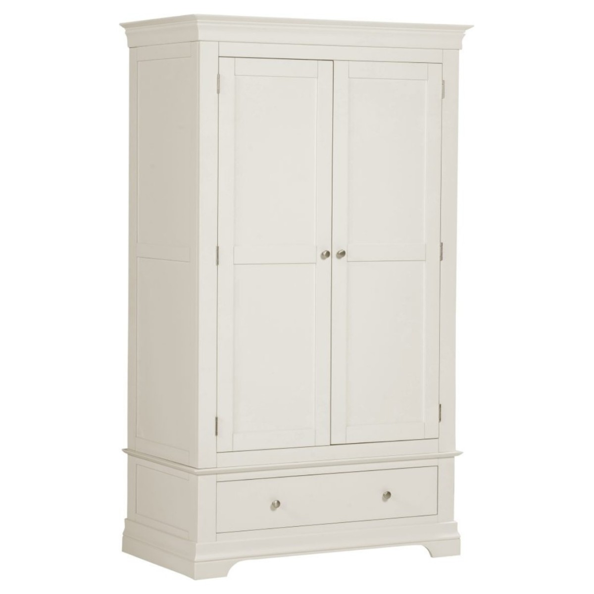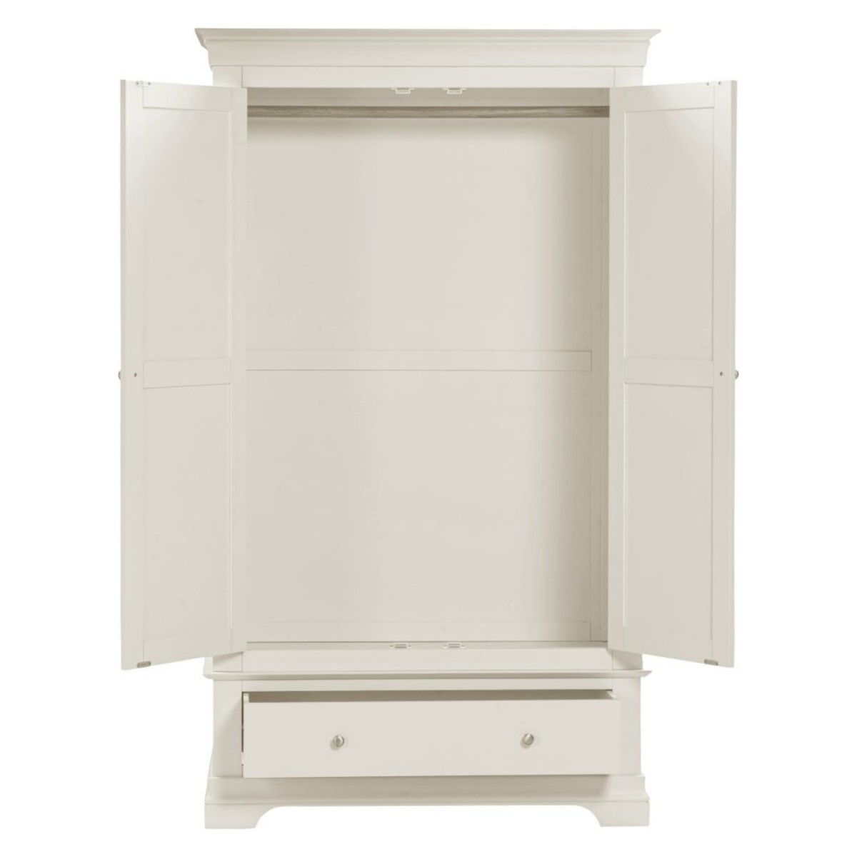 Reference: 100-101-233The Bordeaux 2 Door Wardrobe is ideal for smaller rooms or as a guest wardrobe. With a choice of ivory or pebble grey finish, this piece delivers essential hanging space in a stylish, space-saving design. Beautifully detailed and built to last, it’s the perfect blend of form and functionality.