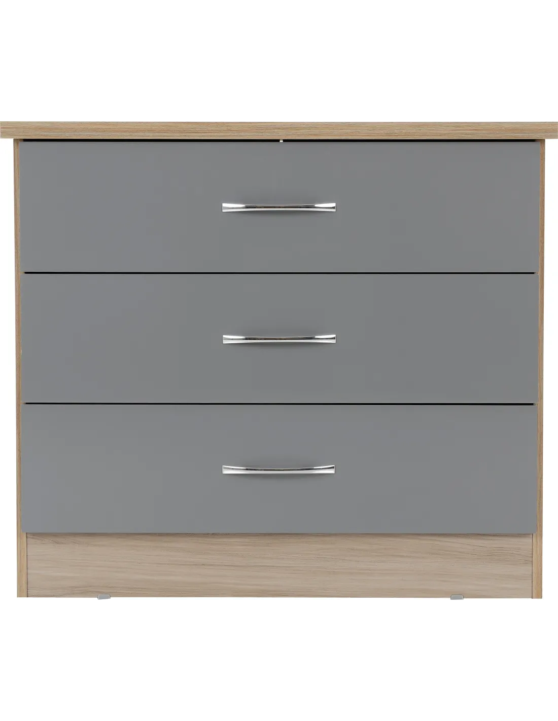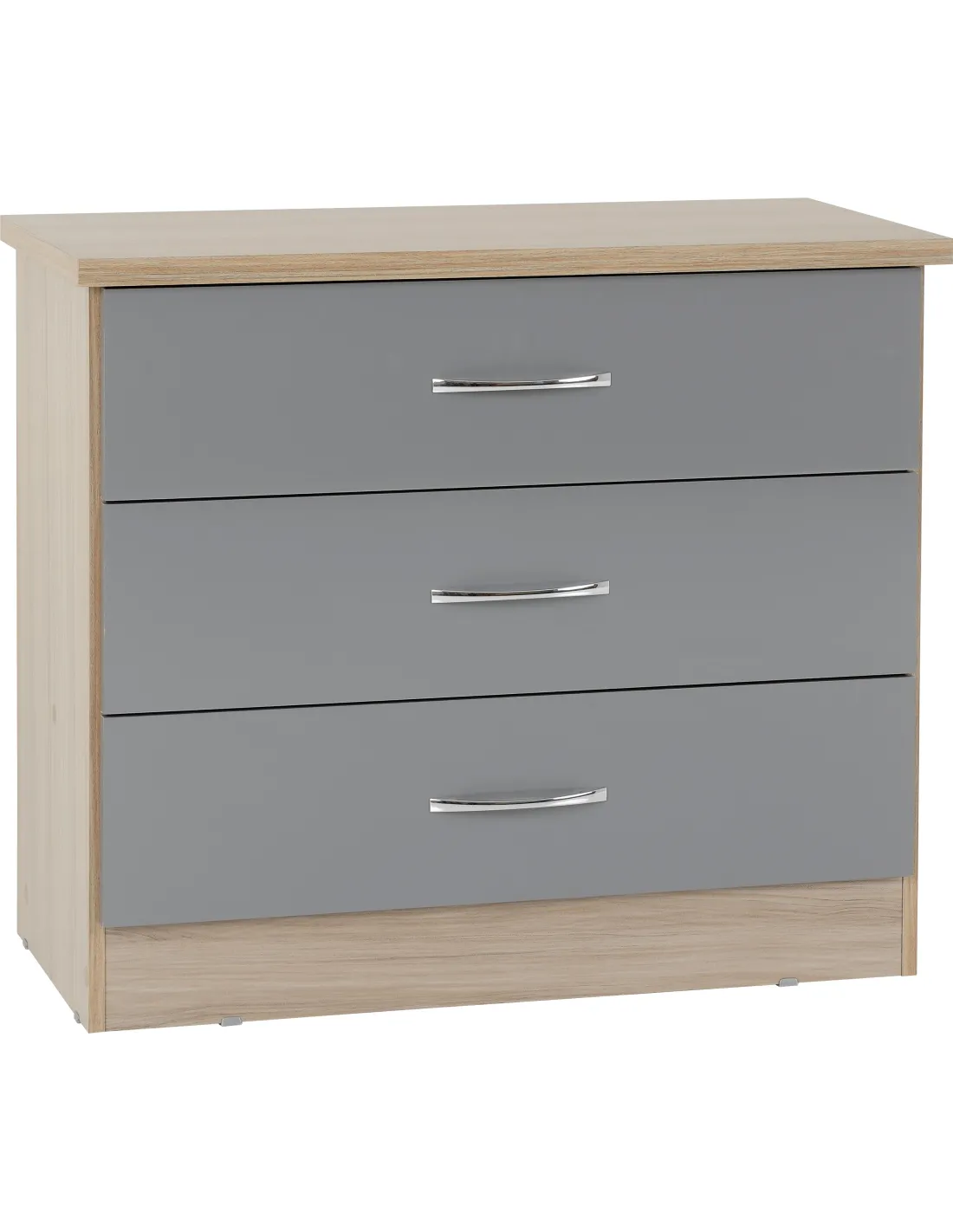 Nevada 3 Drawer Chest - Grey Gloss/Light Oak Effect Veneer