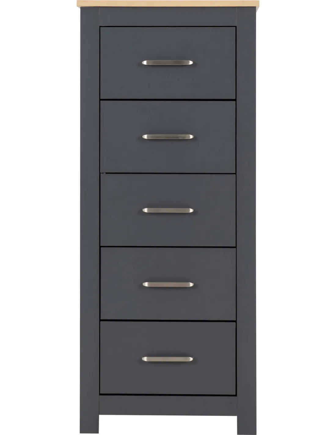 Portland 5 Drawer Narrow Chest - Grey/Oak Effect