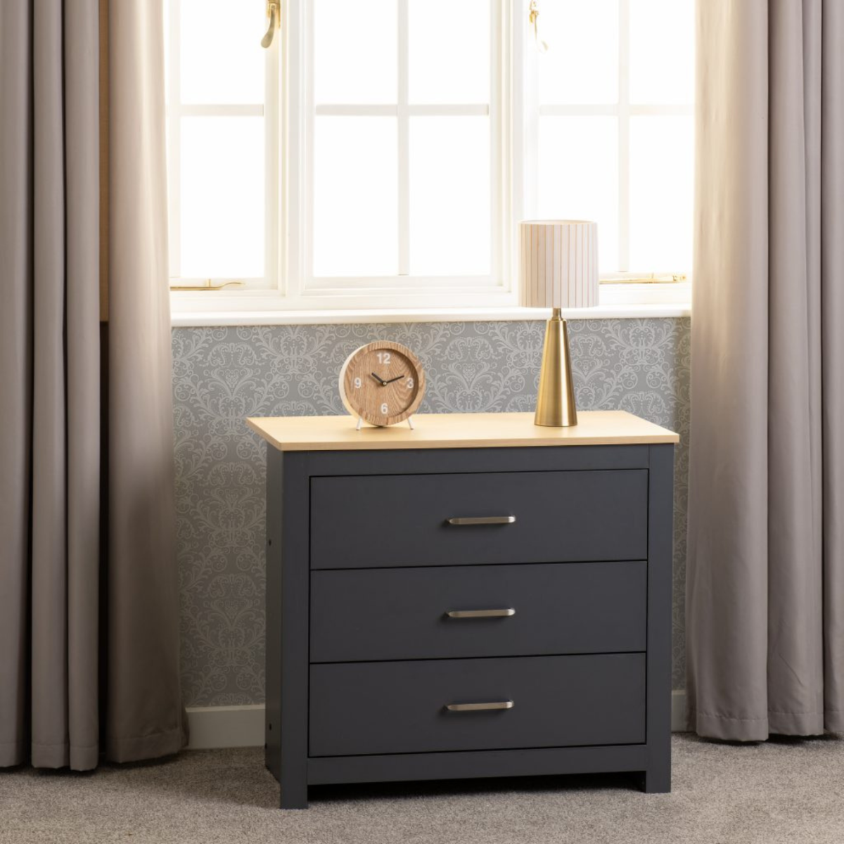 Portland 3 Drawer Chest - Grey/Oak Effect