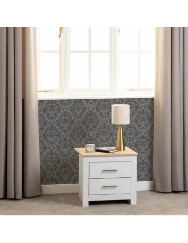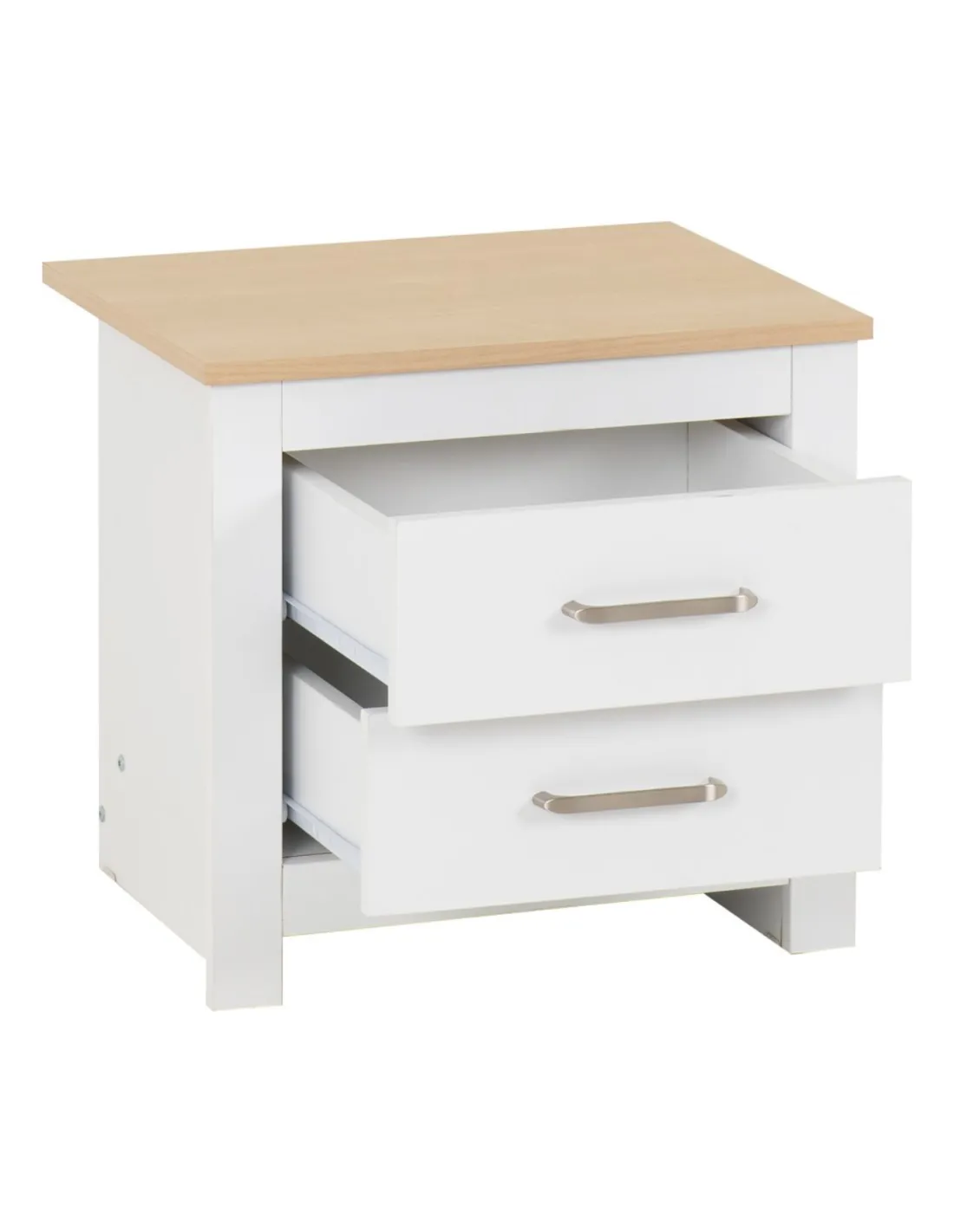 Portland 2 Drawer Bedside Locker - White/Oak Effect