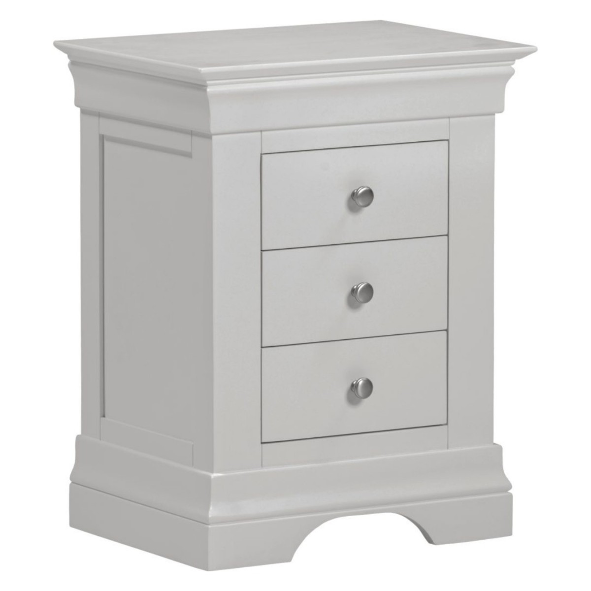 Reference: 100-103-119Bring a touch of classic charm to your bedside with the Bordeaux 3 Drawer Bedside Locker. Featuring ivory or pebble grey painted finish, this compact chest offers three drawers ideal for storing nighttime essentials. With its gently bevelled edges and fine painted finish, it complements a wide range of interiors.
