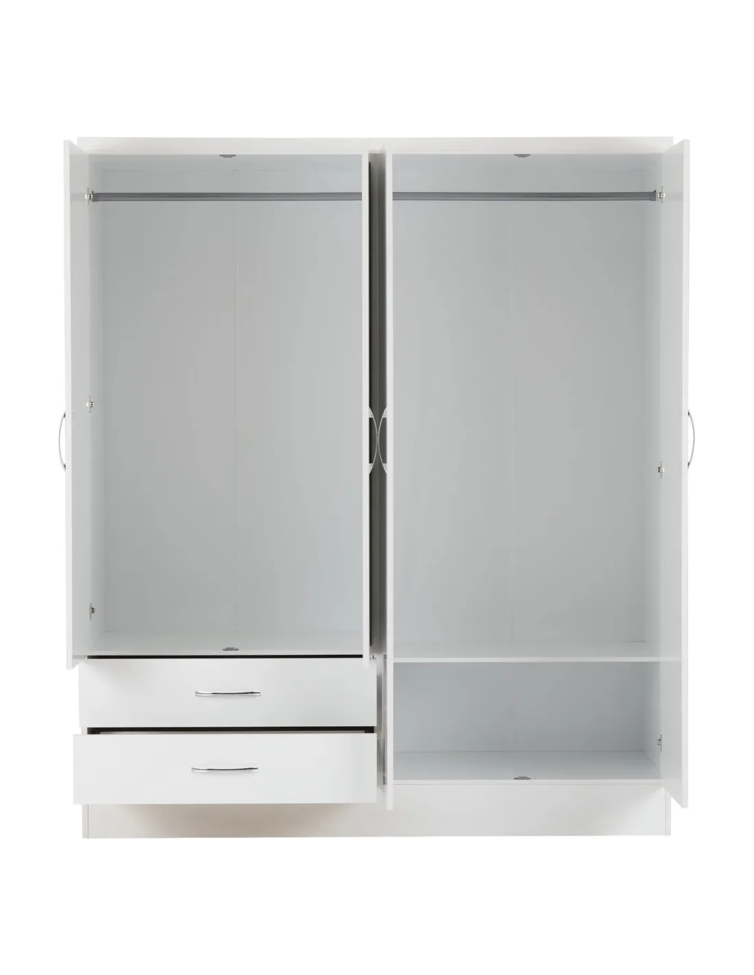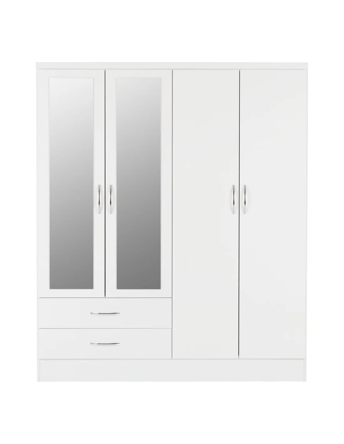 Nevada 4 Door 2 Drawer Wardrobe Bedroom Set - White Gloss