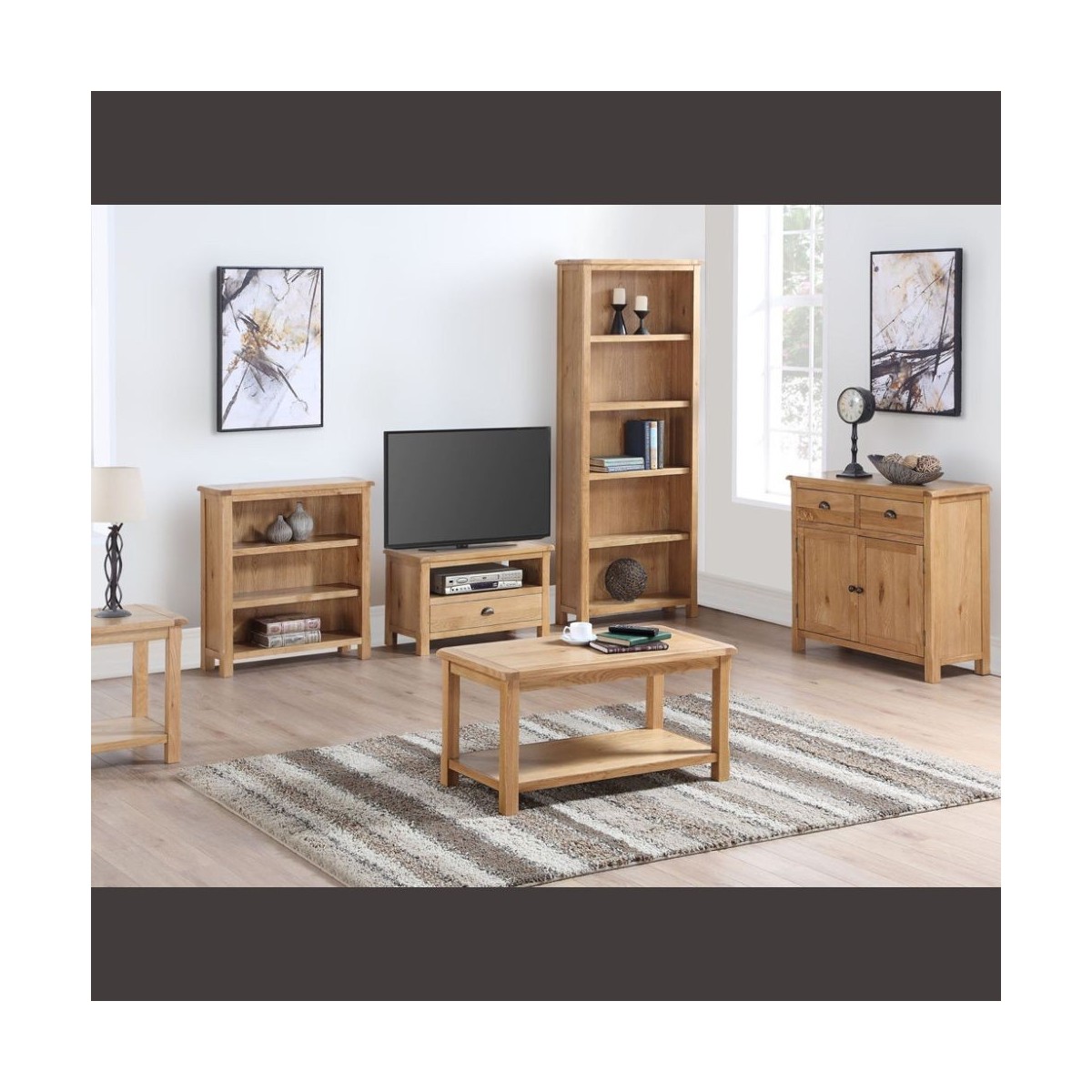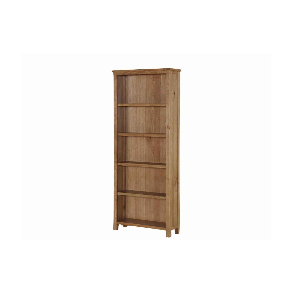 Reference: 12195The Kilmore Oak range is a stunning collection of furniture offering excellent value for money and offering a superior build quality. The rustic finish creates a stylish yet traditional feel for any dining and living room space within the home. Kilmore, a traditional rustic oak collection deigned with solid oak and selected oak veneers and finished with a natural oil finish gives the range a very luxurious feel and look. Designed with 5 spacious compartments, the bookshelf offers ample storage space for keeping your magazines, books, DVDs, multimedia devices and other decorative items well organised and within reach. Additionally it is also a perfect storage solution for your hallway and any other living space.