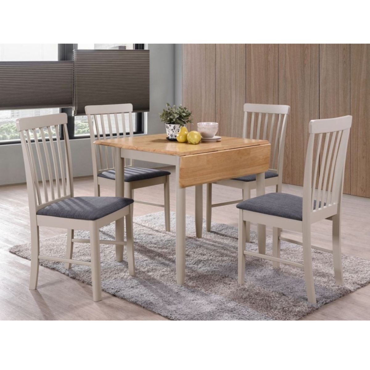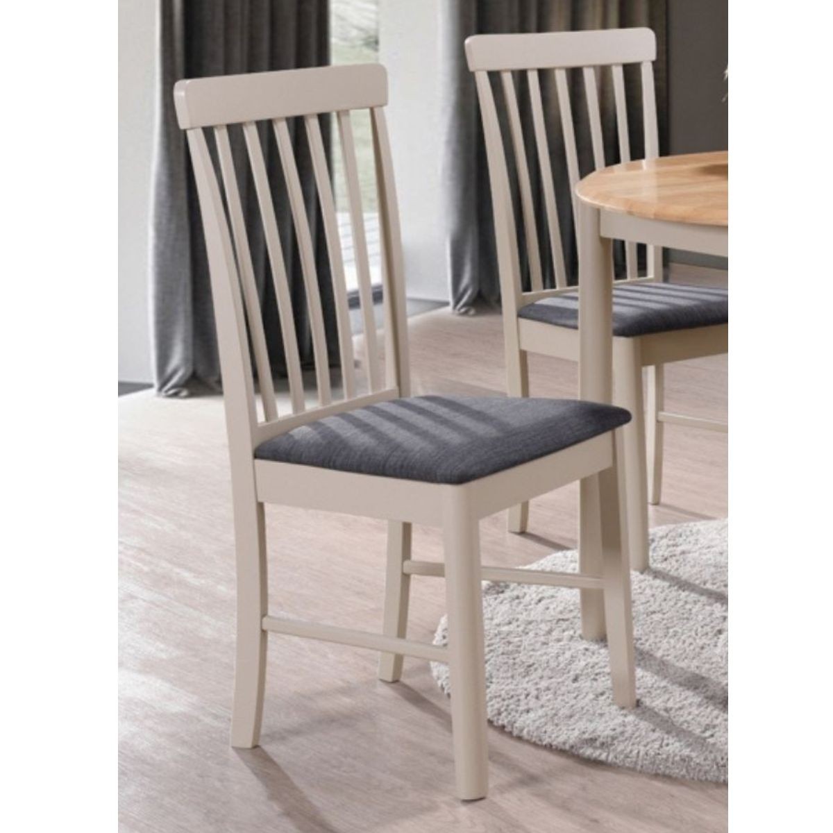 - Matching chairs in solid hardwood with charcoal fabric seat pads