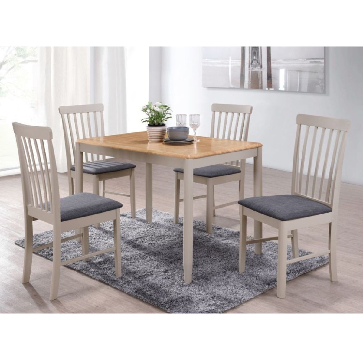 - Matching chairs in solid hardwood with charcoal fabric seat pads