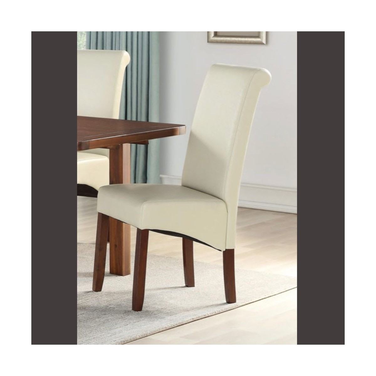 Reference: 13807Introducing our Sophie range: a contemporary collection of dining chairs designed to enhance any home decor. Upholstered in cream leather air, this chair exudes sophistication and modern style. Supported by sturdy solid acacia legs, it offers both comfort and durability, making it a perfect addition to your dining area.