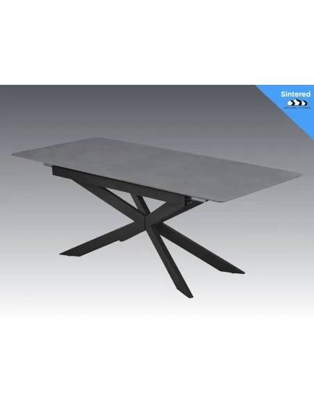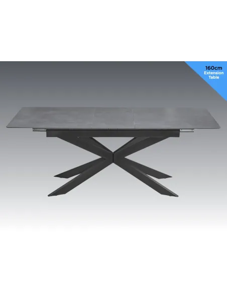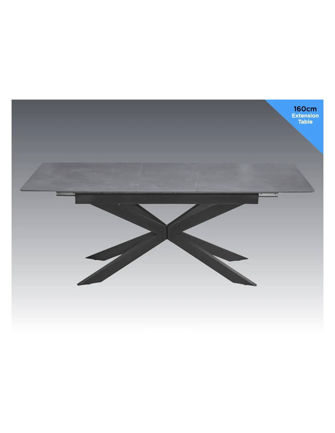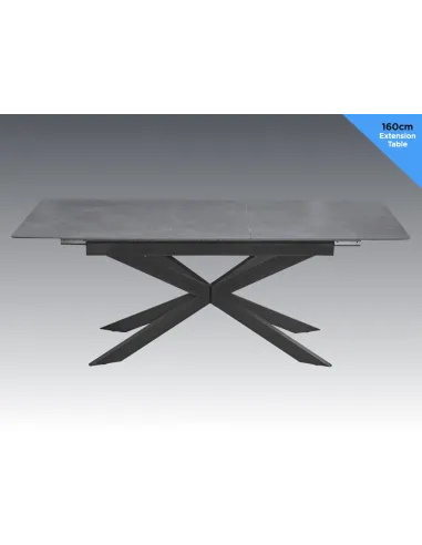 Reference: 14464The Azzurra sintered stone looks aesthetically pleasing to the eye and yet is toughly resistant to heat, scratching and stains, a product for creative expression which will have a lasting impact. A 160cm extension dining table which employs a smart automatic extension mechanism in which you can extend or shorten with one smooth motion. Complimented by a console, coffee and end table all in dark grey sintered stone tops, with black metal legs, the Azzurra will make an impact statement in any home.