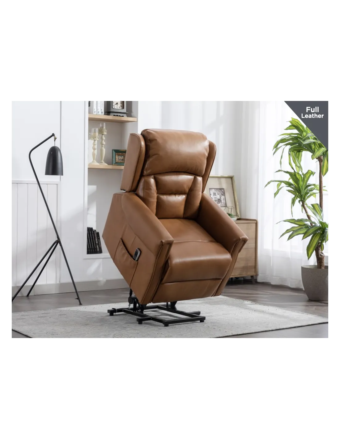 Sandringham Dual Motor Lift & Tilt Armchair Recliner - Camel Leather