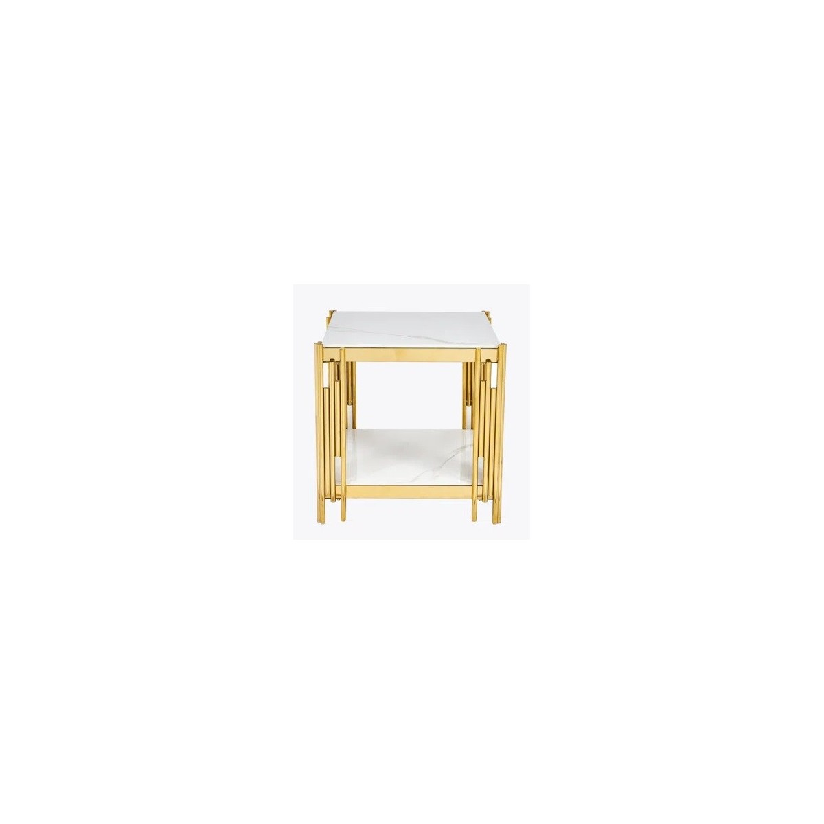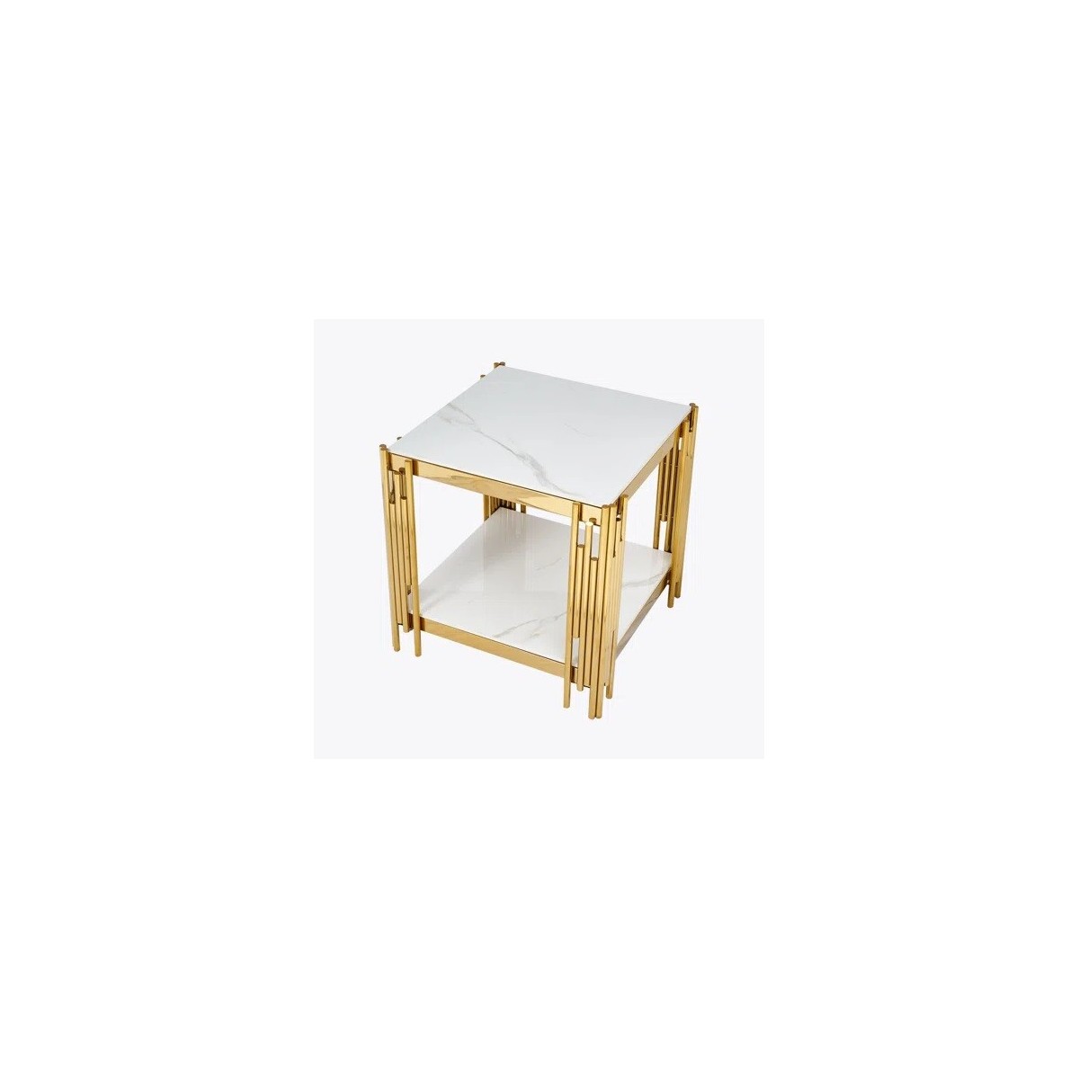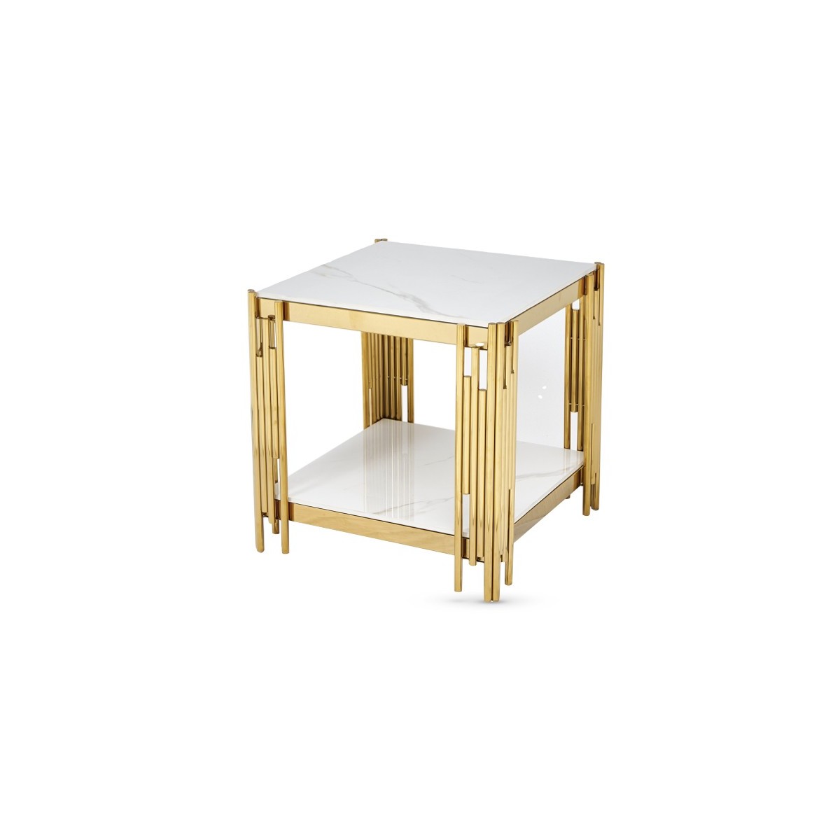 Reference: 14893Unite functionality and elegance with our Belini Collection, available in three on-trend finishes - sintered stone and gold, sintered stone and stainless steel or glass and stainless steel. Each piece combines durability with exquisite design. The sturdy frames ensure longevity, while the sintered stone and tempered glass tops exude a natural, organic appeal. Bring a harmonious blend of contemporary aesthetics and practicality into your home with these stunning pieces. The Belini range will become the centerpiece of your interior.