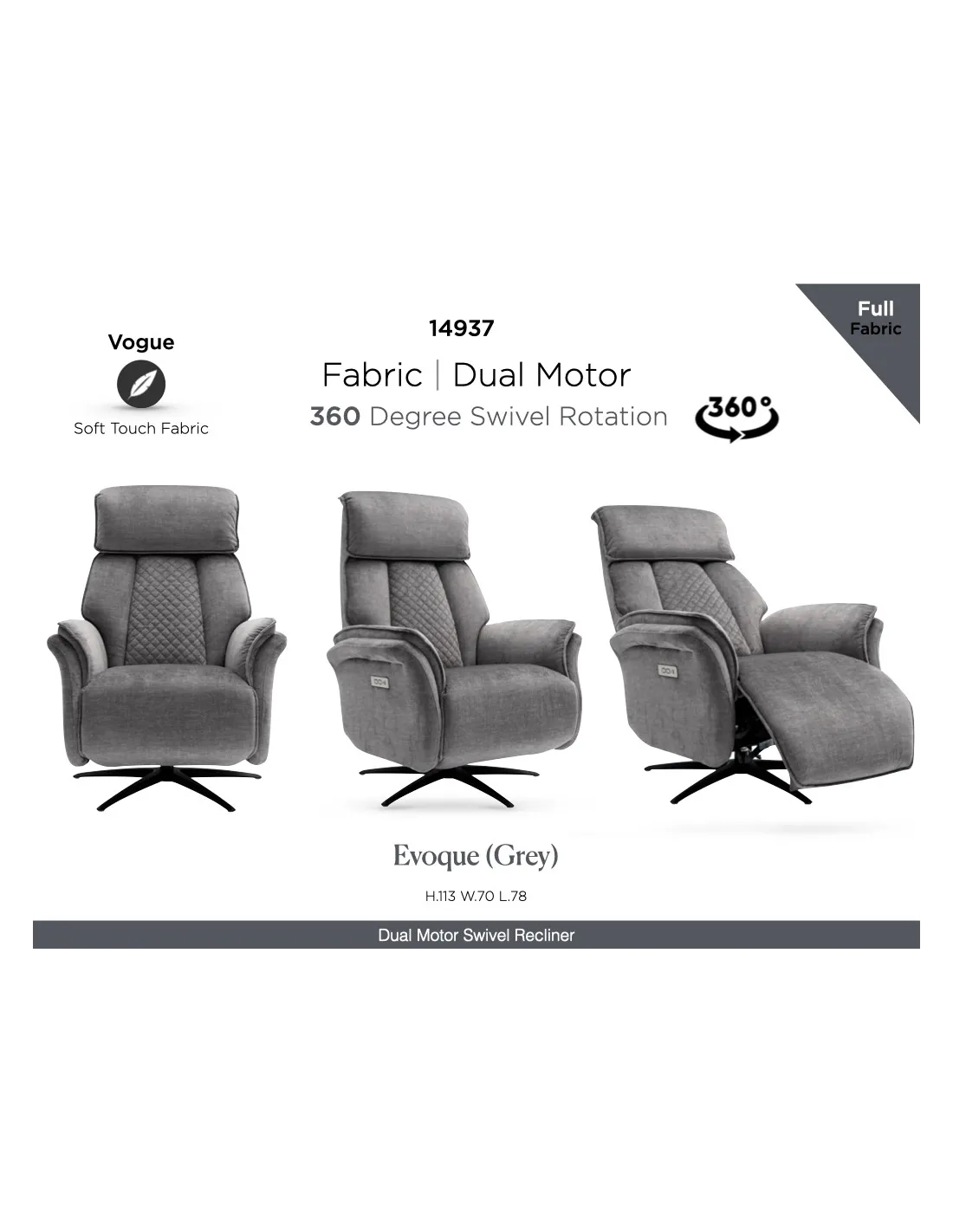 Evoque Dual Motor Electric Swivel Armchair - Grey