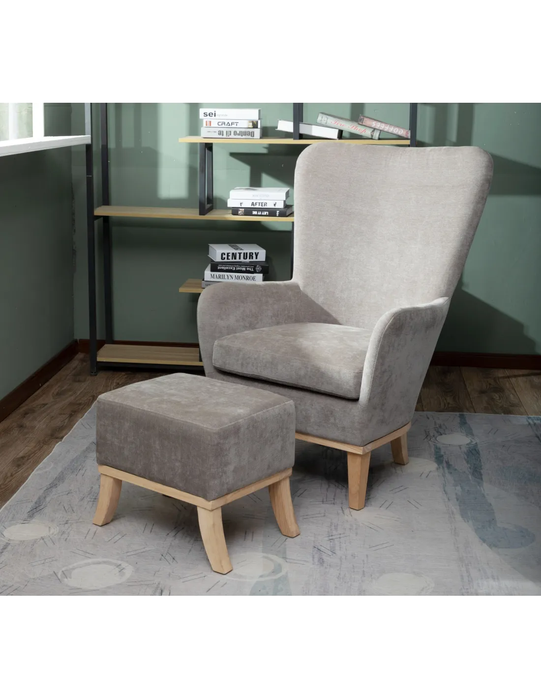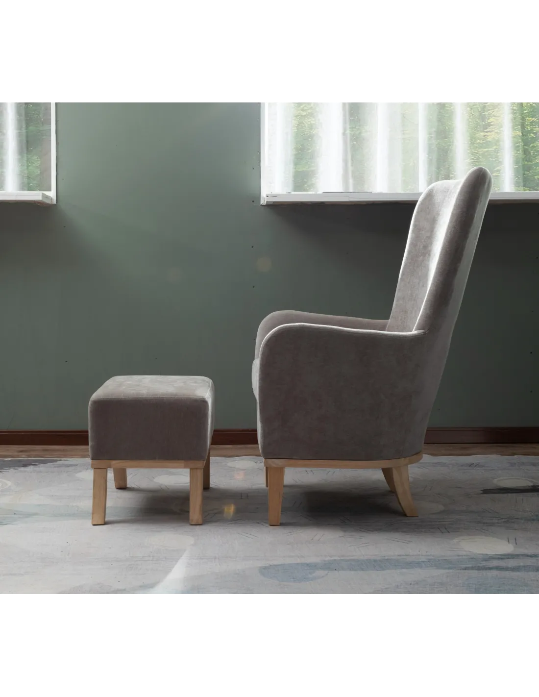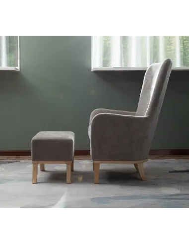Unwind in opulent comfort with the 1986 chair and footstool. This high-back armchair offers plush coziness and durability with its rich fabric, detachable cushion, and sturdy wooden feet. It comes with a matching fabric footstool that enhances both the chair's functionality and style. Elevate your living space with this exquisite combination of comfort and sophistication, making every moment a luxurious experience. Choose the 1986 chair and footstool to transform your home into a haven of relaxation and modern opulence.