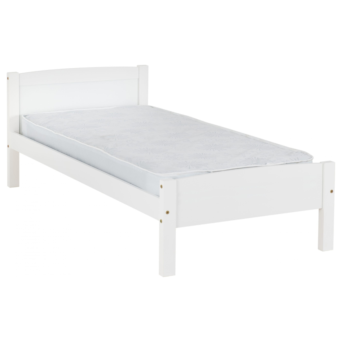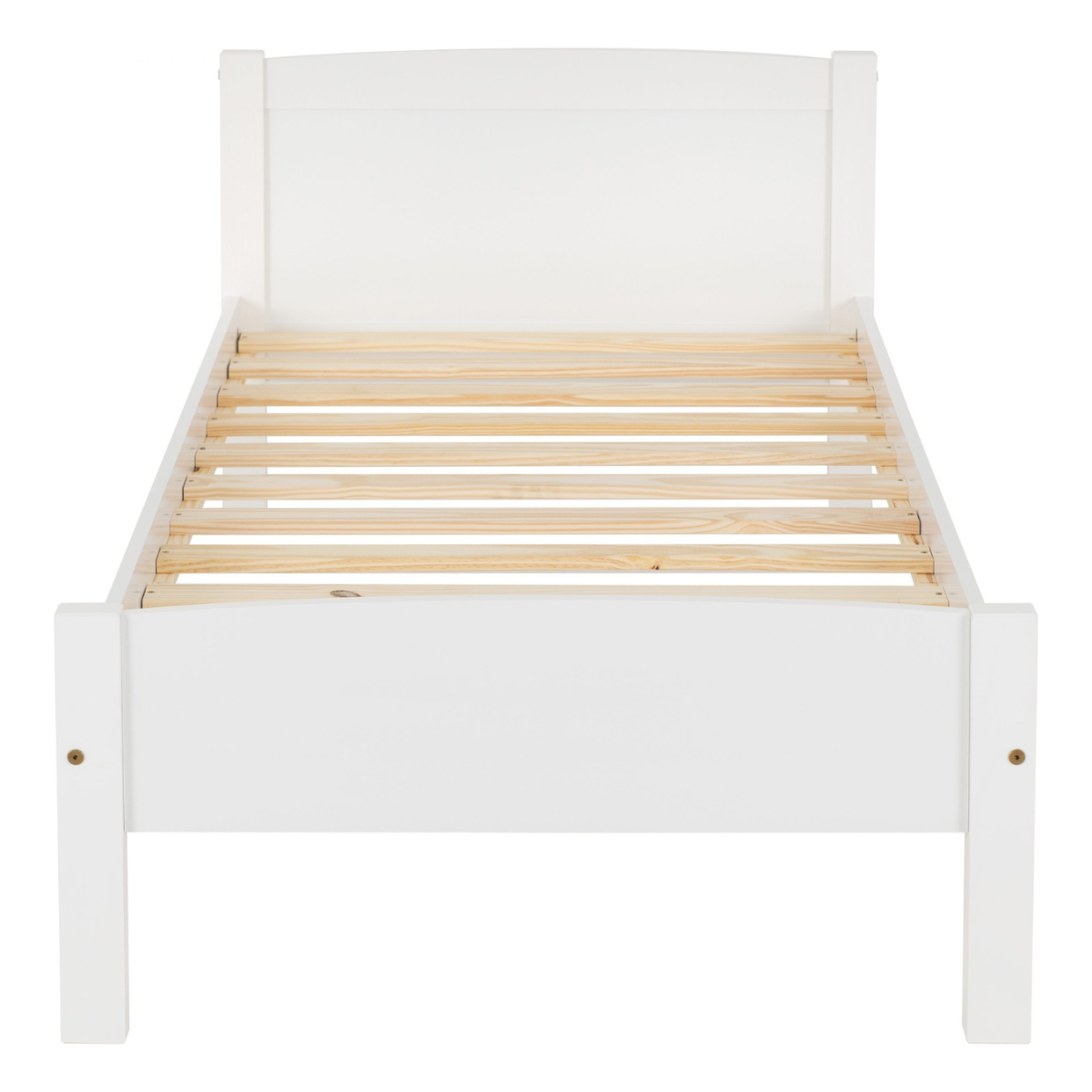 Reference: 200-201-003A modest and minimal wooden bedframe, the Amber 3ft bedframe features a clean white finish that brings a fresh and timeless appeal to any bedroom. Designed with simplicity and practicality in mind, it combines a sleek silhouette with dependable comfort and support. The solid wood frame ensures long-lasting durability, while the headboard provides a comfortable resting spot for reading or relaxing in bed.