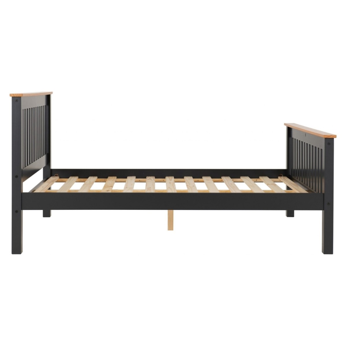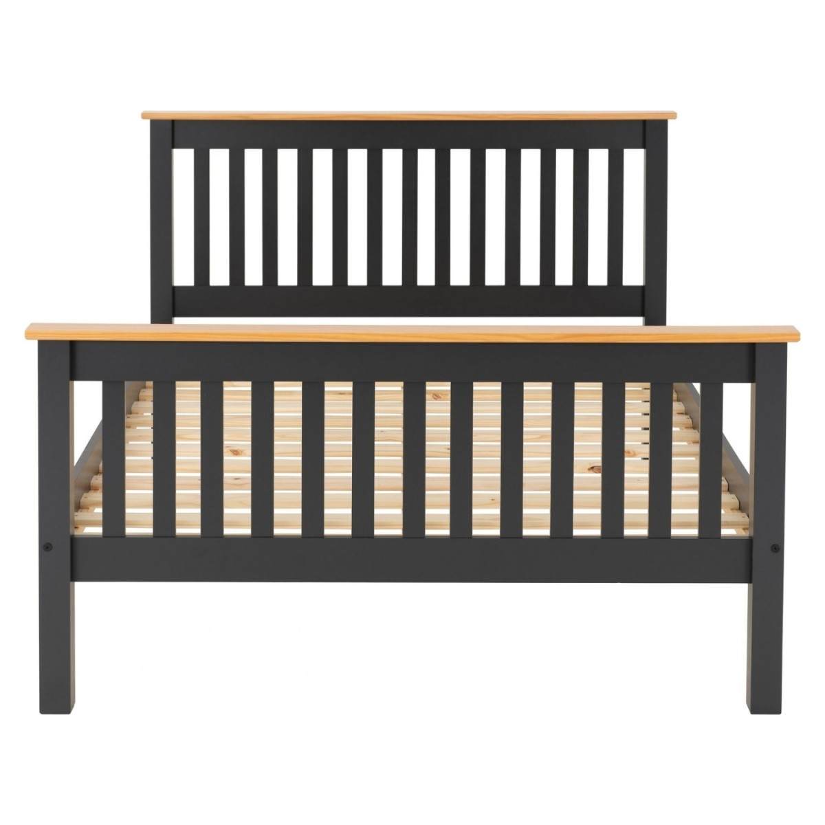 Reference: 200-203-112Built to last from solid pine timbers, the Monaco High Foot End Bedframe is an affordable and stylish centrepiece for any bedroom. Finished in a sleek, modern grey, it features matching headboard and footboard panels with vertical slats and oversized oak plinths for a refined, timeless look. The strong pine slatted base offers excellent mattress support while allowing air to circulate for a cool and comfortable night’s sleep. Combining durability, elegance, and unbeatable value, the Monaco bedframe is a standout choice for style-conscious shoppers.