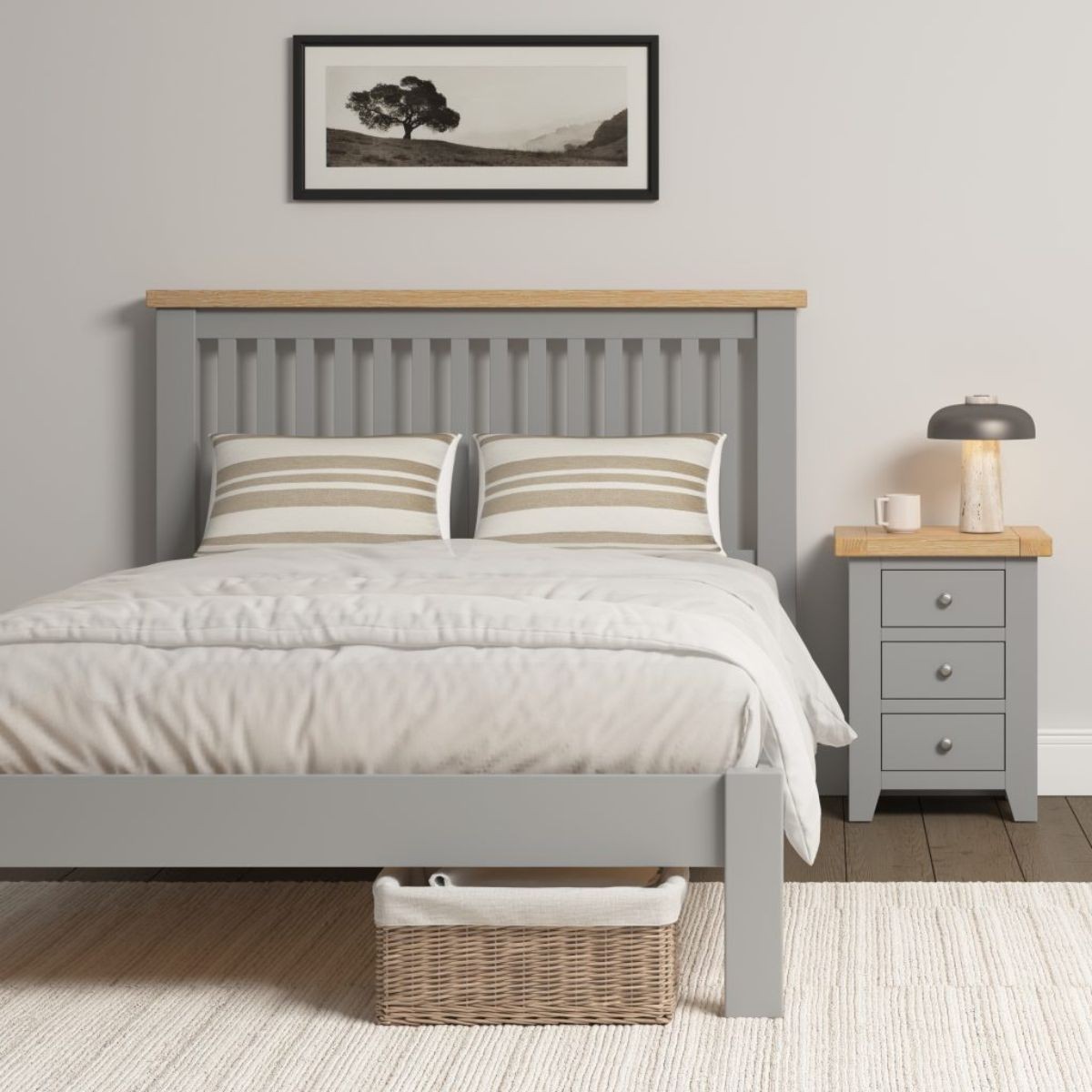Windsor 4FT6 Low End Bed - Pebble Grey/Oak