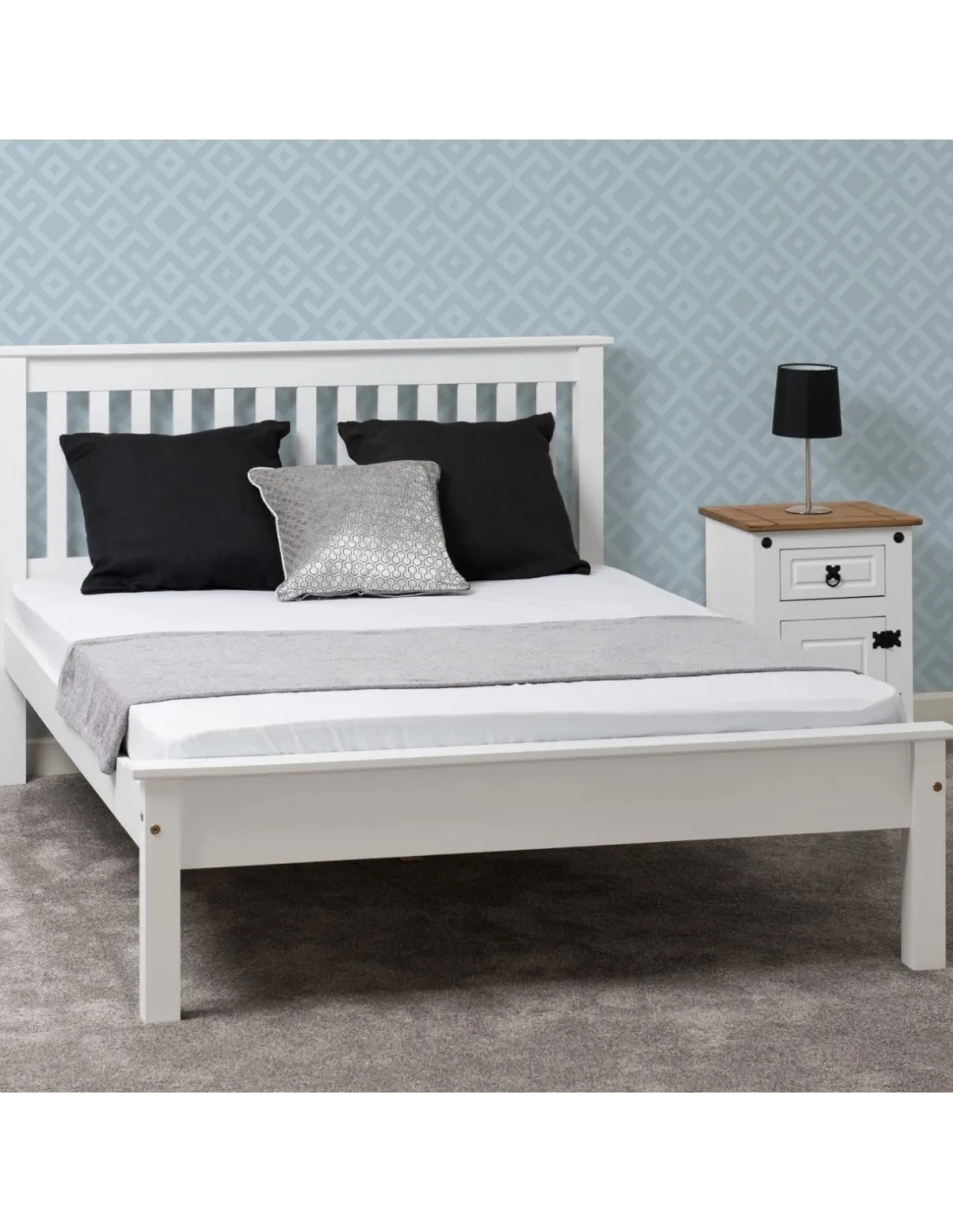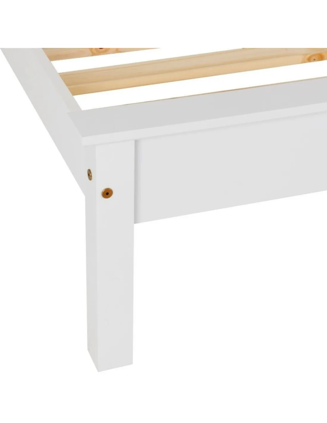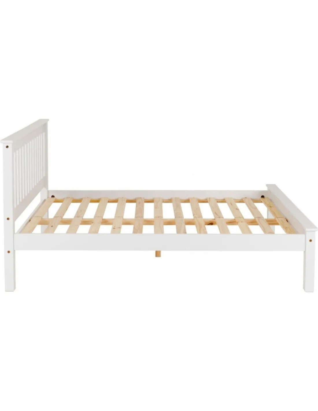 Reference: 200-204-008Built to last from solid pine timbers, the Monaco Low Foot End Bedframe is an affordable and stylish addition to any bedroom. Finished in a clean white tone, it features a slatted headboard and oversized oak plinths on both ends for a touch of elegance and timeless appeal. Strong pine slats provide a robust base for your mattress while allowing airflow for a cool and comfortable night’s sleep. Perfectly blending durability and design, the Monaco bedframe offers exceptional value without compromising on quality or style.