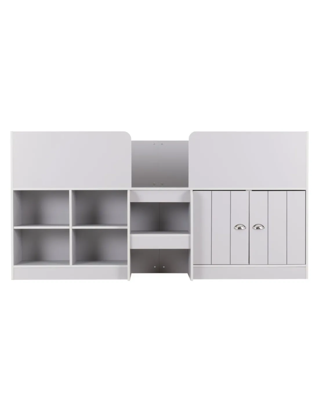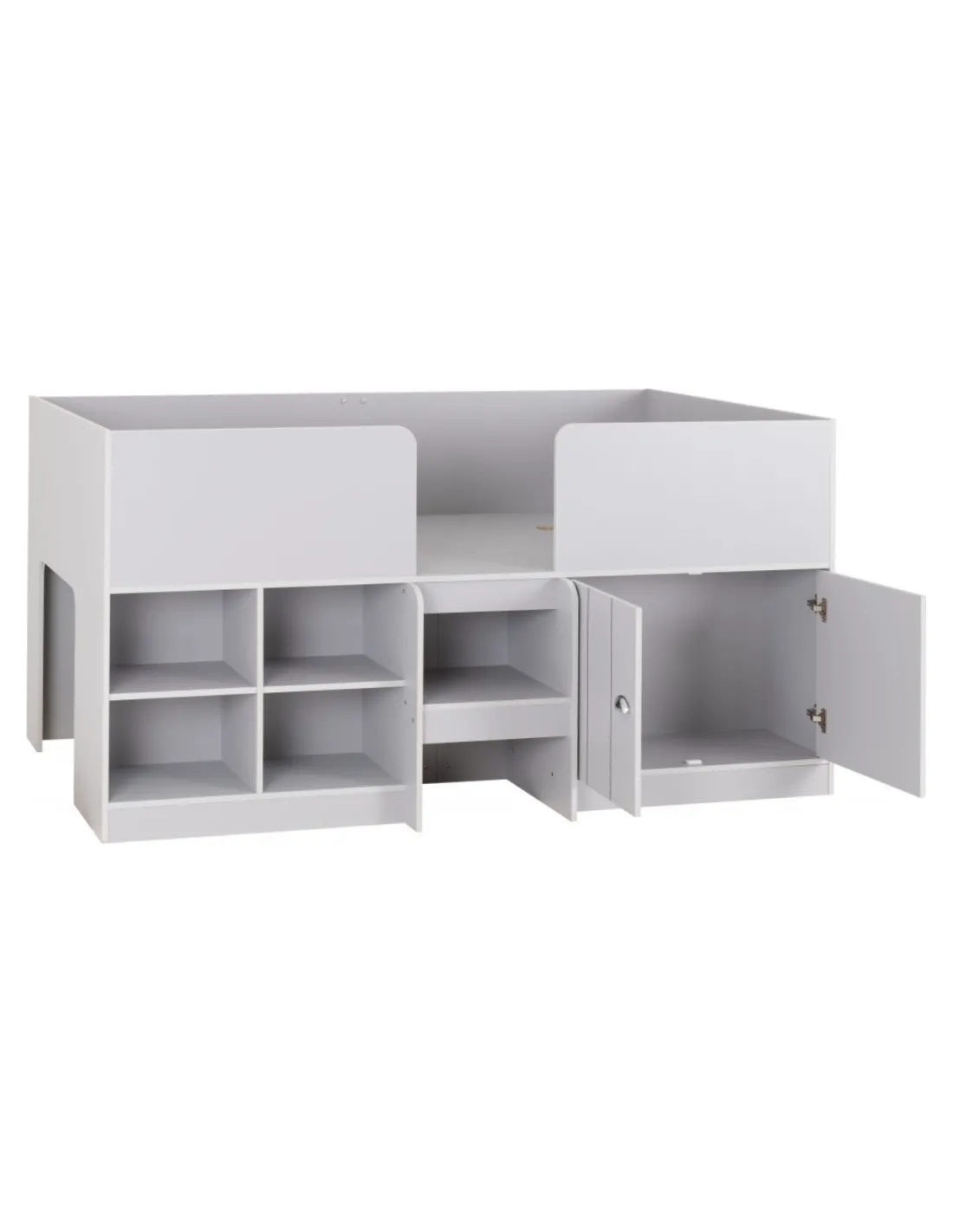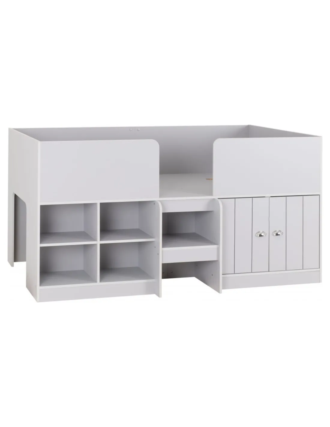 Reference: 200-206-021The Orlando Low Sleeper Bedframe offers a fresh and minimalist design, perfect for both boys' and girls' bedrooms. Finished in a neutral dove grey, it easily coordinates with any décor. Its compact, space-saving design features integrated storage beneath the bed, ideal for books, toys, and essentials. Designed with child-friendly curved corners and safety borders, the Orlando Bedframe provides a secure and stylish transition bed for toddlers.