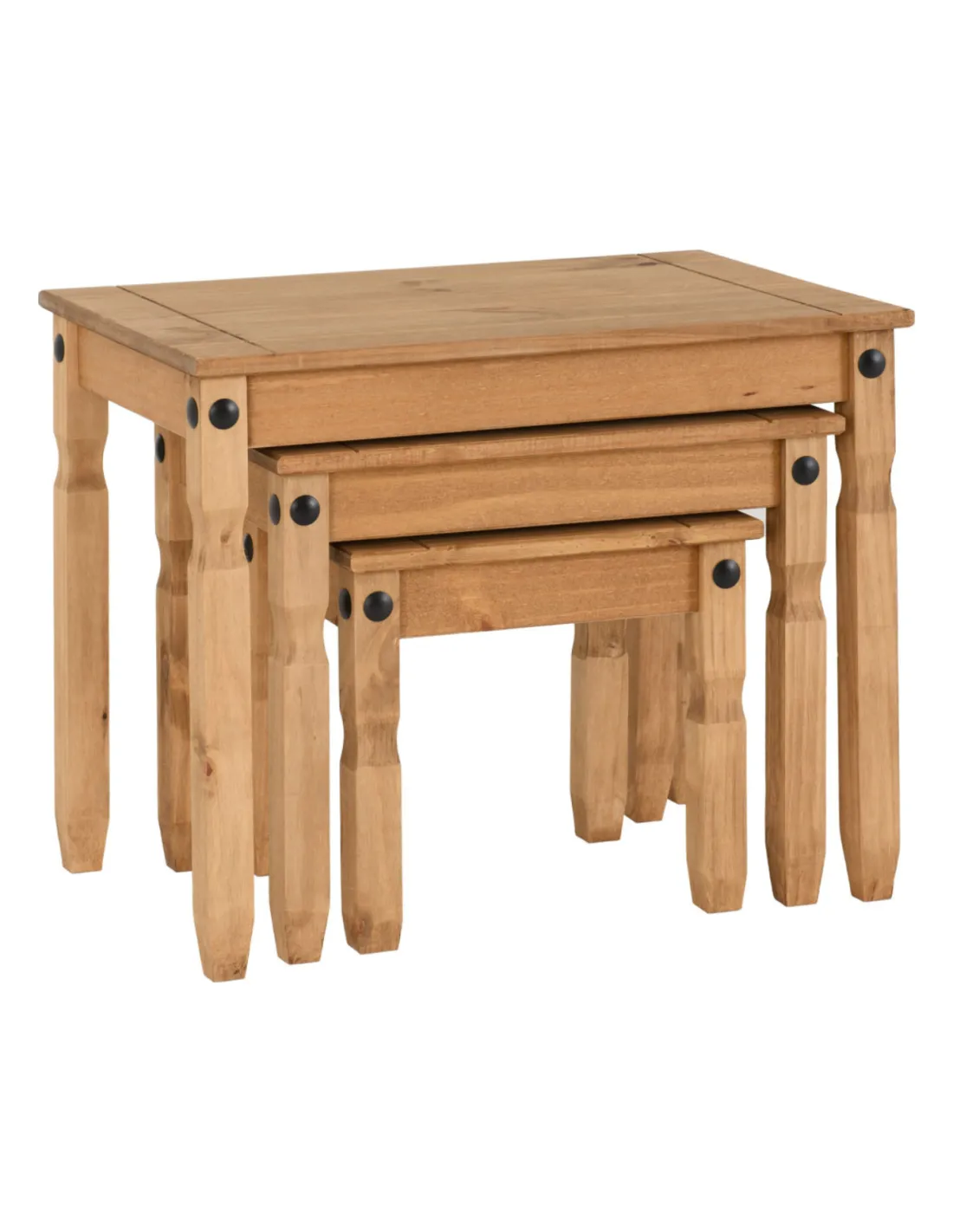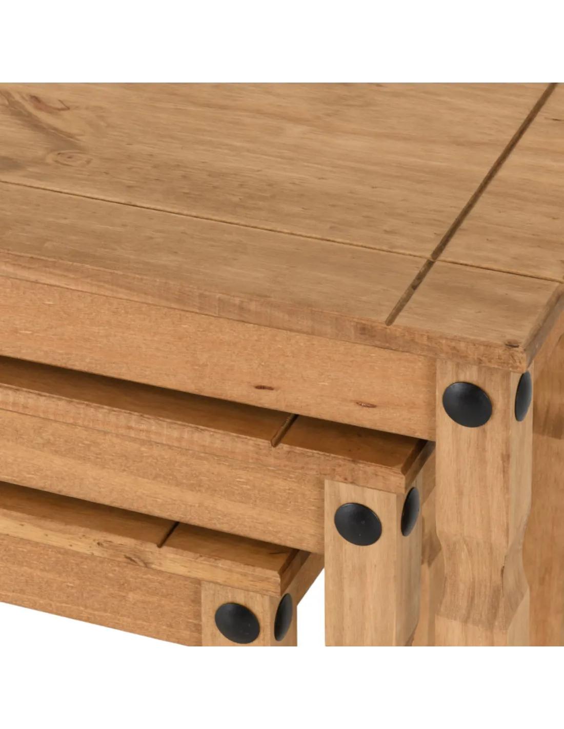 Reference: 300-303-010The Corona range is a timeless collection crafted with a charming distressed waxed pine finish, bringing rustic warmth and character into any home. Its signature black metal handles and decorative studs add a bold, authentic touch that perfectly complements the traditional design. Durable, practical, and full of personality, the Corona range offers an extensive selection of pieces to furnish every room with cohesive style and classic appeal.