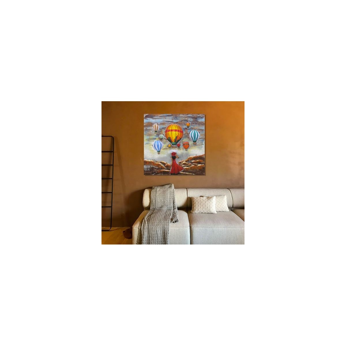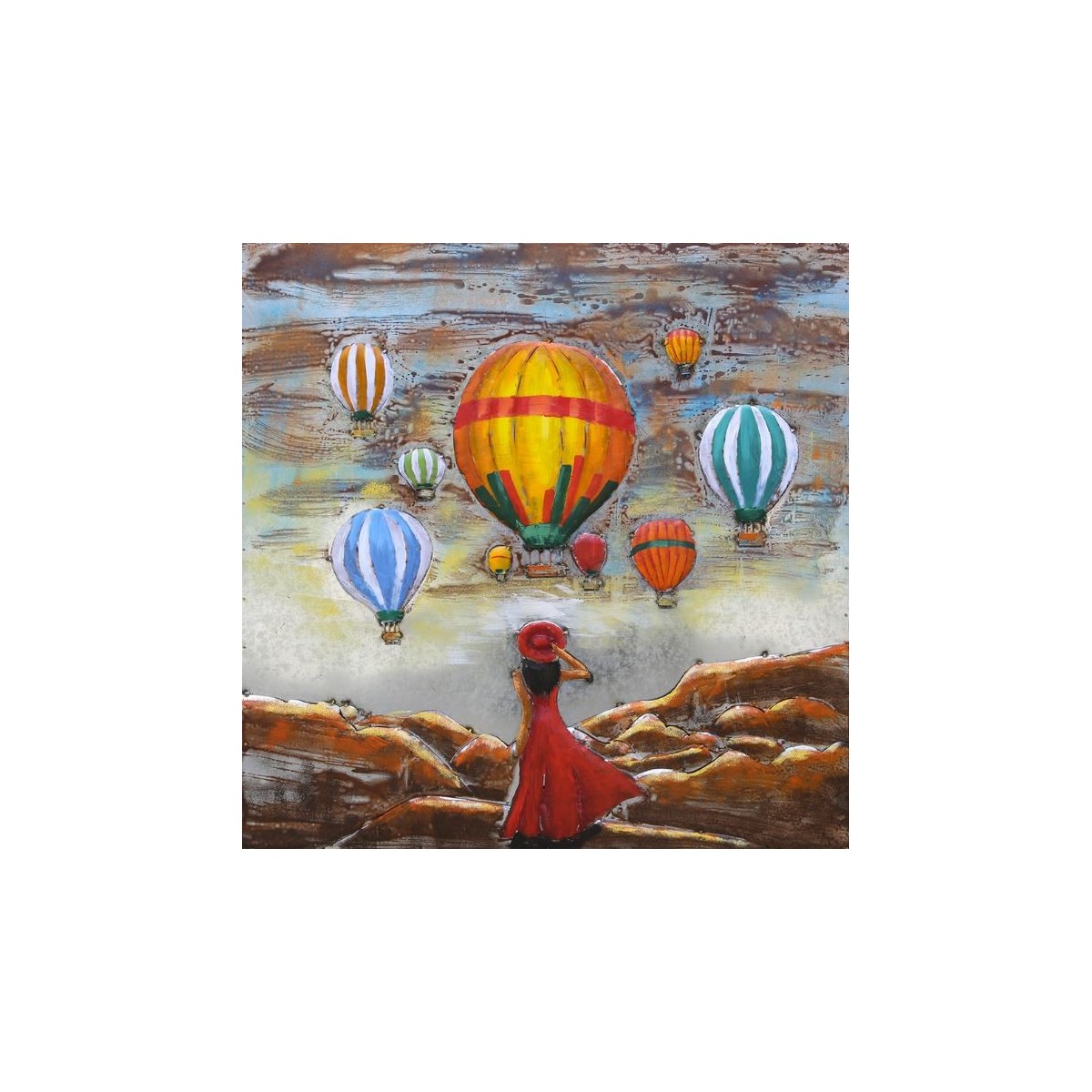 An exquisite piece of 3D Metal and Wood Wall Decor that brings a touch of rustic charm and modern artistry to your home. This stunning 80x80 cm wall art features the iconic and beautiful Turkish air balloon flight, meticulously designed to captivate and inspire.