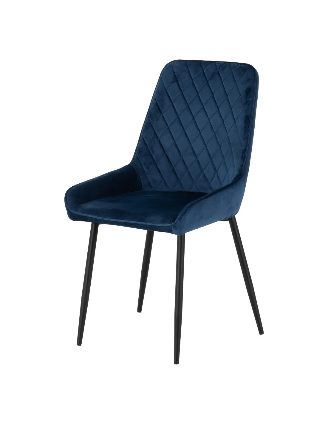 Reference: 400-402-118This modern Avery dining chair has a sleek look, which is perfect for modern living. It will add a touch of style to your dining area with sapphire blue velvet upholstery and black leg chairs.