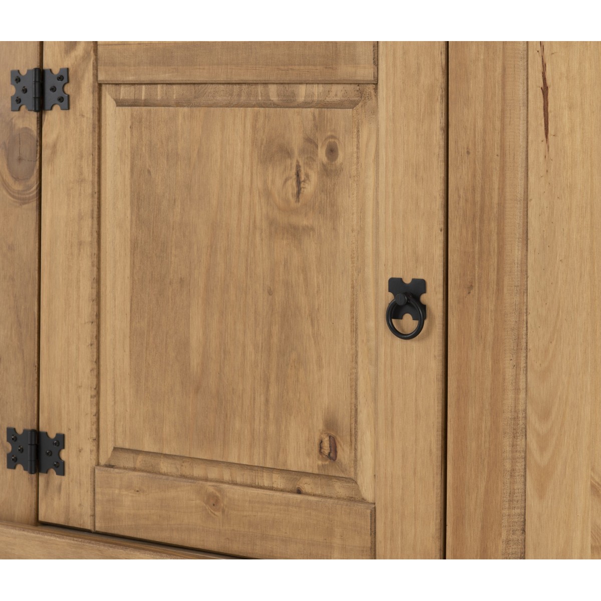 Reference: 400-406-007The Corona range is a timeless collection crafted with a charming distressed waxed pine finish, bringing rustic warmth and character into any home. Its signature black metal handles and decorative studs add a bold, authentic touch that perfectly complements the traditional design. Durable, practical, and full of personality, the Corona range offers an extensive selection of pieces to furnish every room with cohesive style and classic appeal.