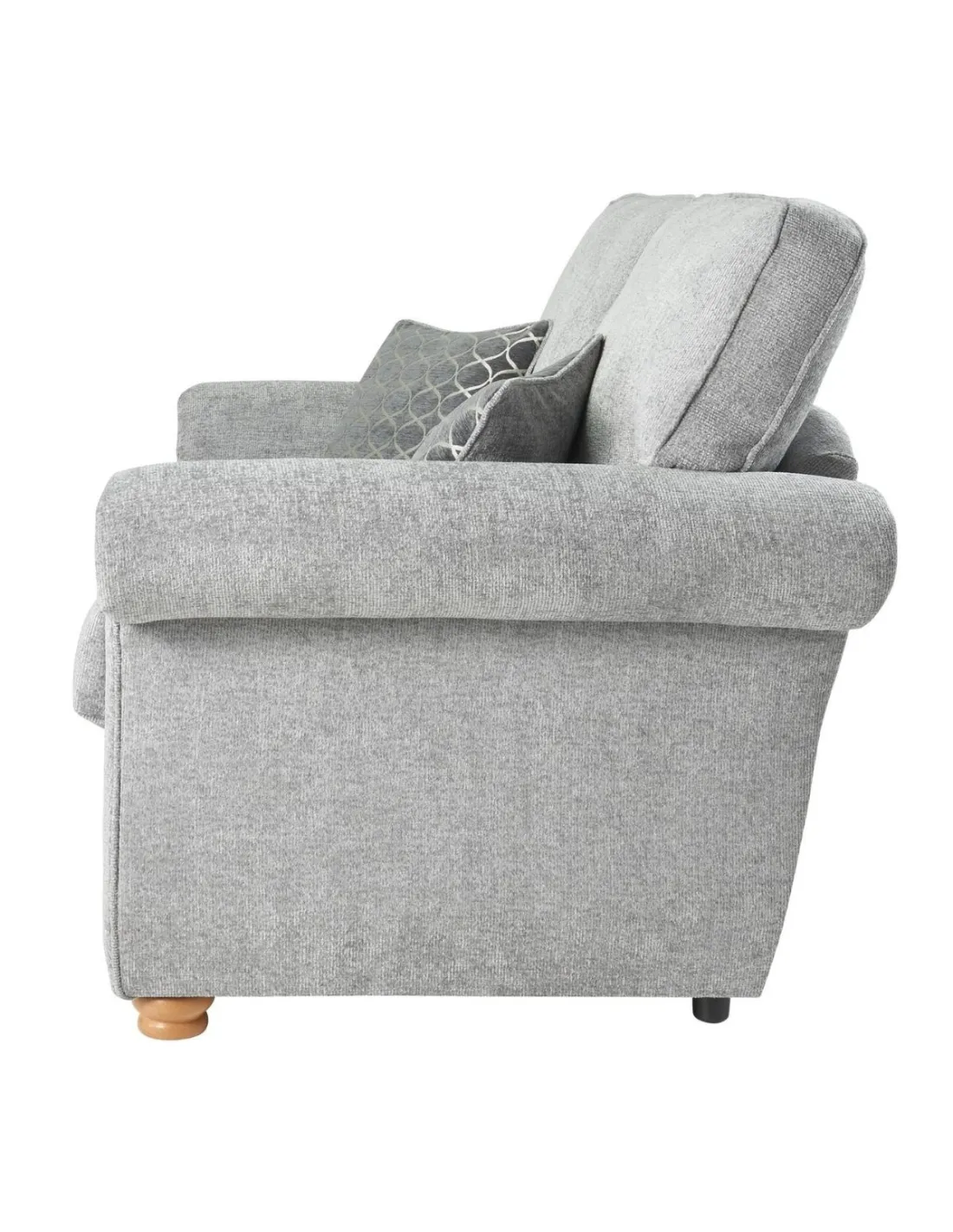 Introducing the Davenport Sofa Range, an epitome of comfort and timeless style. Upholstered in sophisticated Genesis Grey fabric, these sofas bring a sense of understated elegance to any living space. Each piece is paired with feather-filled Trellis Charcoal scatter cushions, combining plush comfort with refined detailing. The sleek light oak legs add a contemporary edge, while the turnable seat cushions offer flexibility and practicality for everyday living. Designed with a focus on craftsmanship, comfort, and modern aesthetics, the Davenport is the perfect centerpiece for those who appreciate luxury without compromising on functionality.