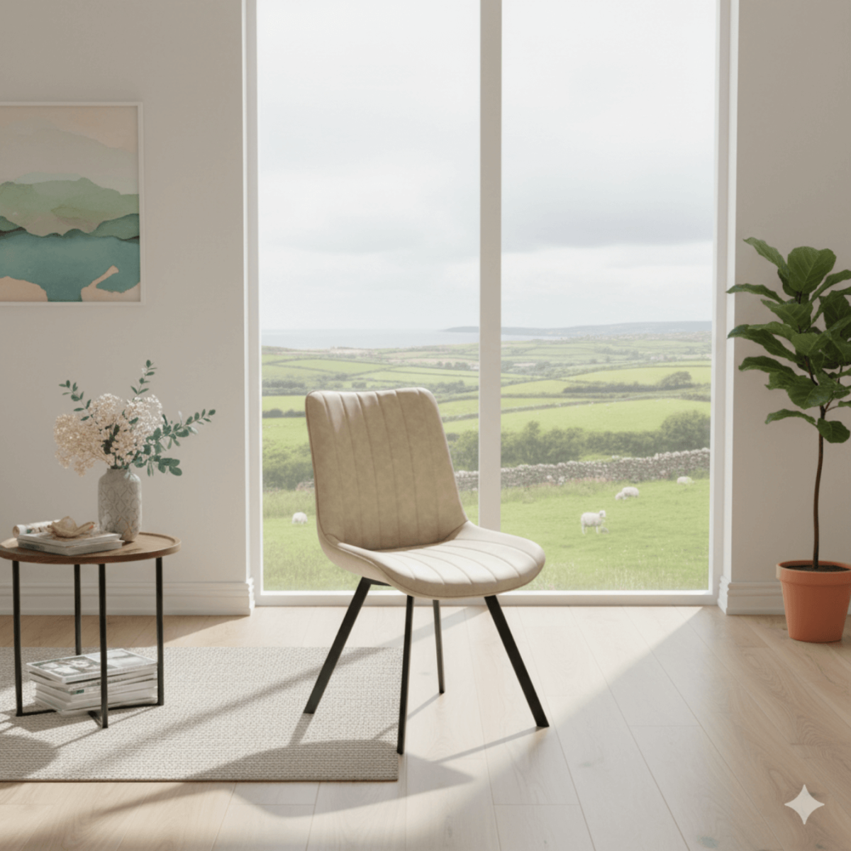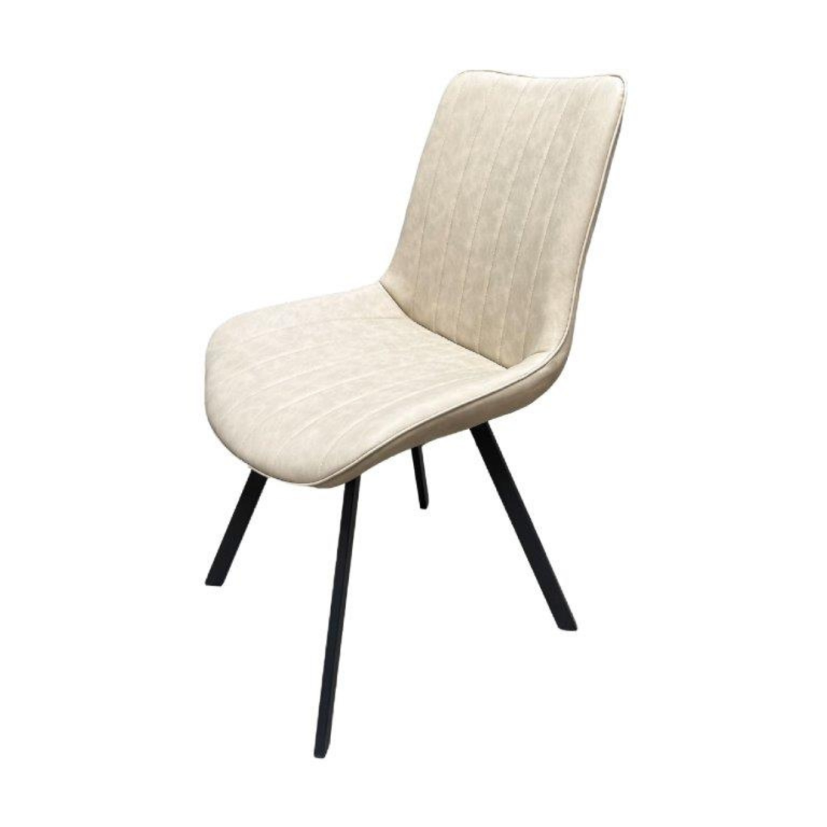 Reference: HTC0083The Fortune Dining Chair in taupe PU combines modern style with comfort. Featuring stitched line detailing on the upholstery, it offers a sleek and refined look that complements the Fortune Dining Table perfectly. The slender black legs provide stability while maintaining a contemporary, lightweight appearance. Ideal for everyday dining or entertaining guests, this chair brings both elegance and practicality to your dining space.