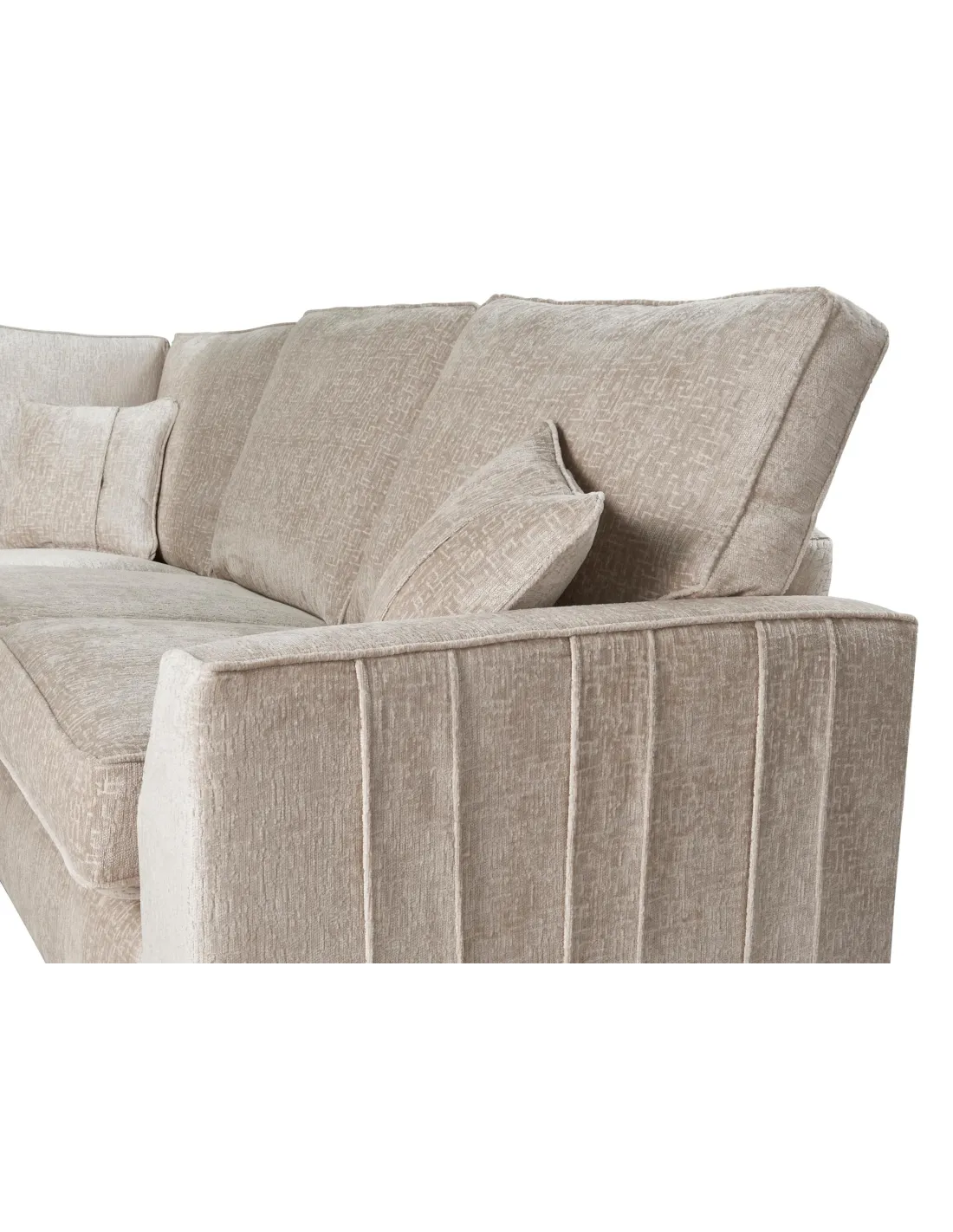 Reference: RIALTOLHFCORNERThe Aurora sofa range, enveloped in the luxurious Alexandra Natural fabric, exudes timeless elegance and comfort. Adorned with matching Alexandra Natural scatter cushions, it offers a harmonious blend of style and coziness. Supported by sleek grey oak legs, this sofa boasts a sophisticated yet contemporary aesthetic. Indulge in unparalleled relaxation with its feather-filled scatter cushions, providing sumptuous support and plushness. The turnable seats ensure enduring comfort and versatility, allowing you to customize your seating experience effortlessly. With its impeccable craftsmanship and attention to detail, the Aurora sofa range is the epitome of refined living.