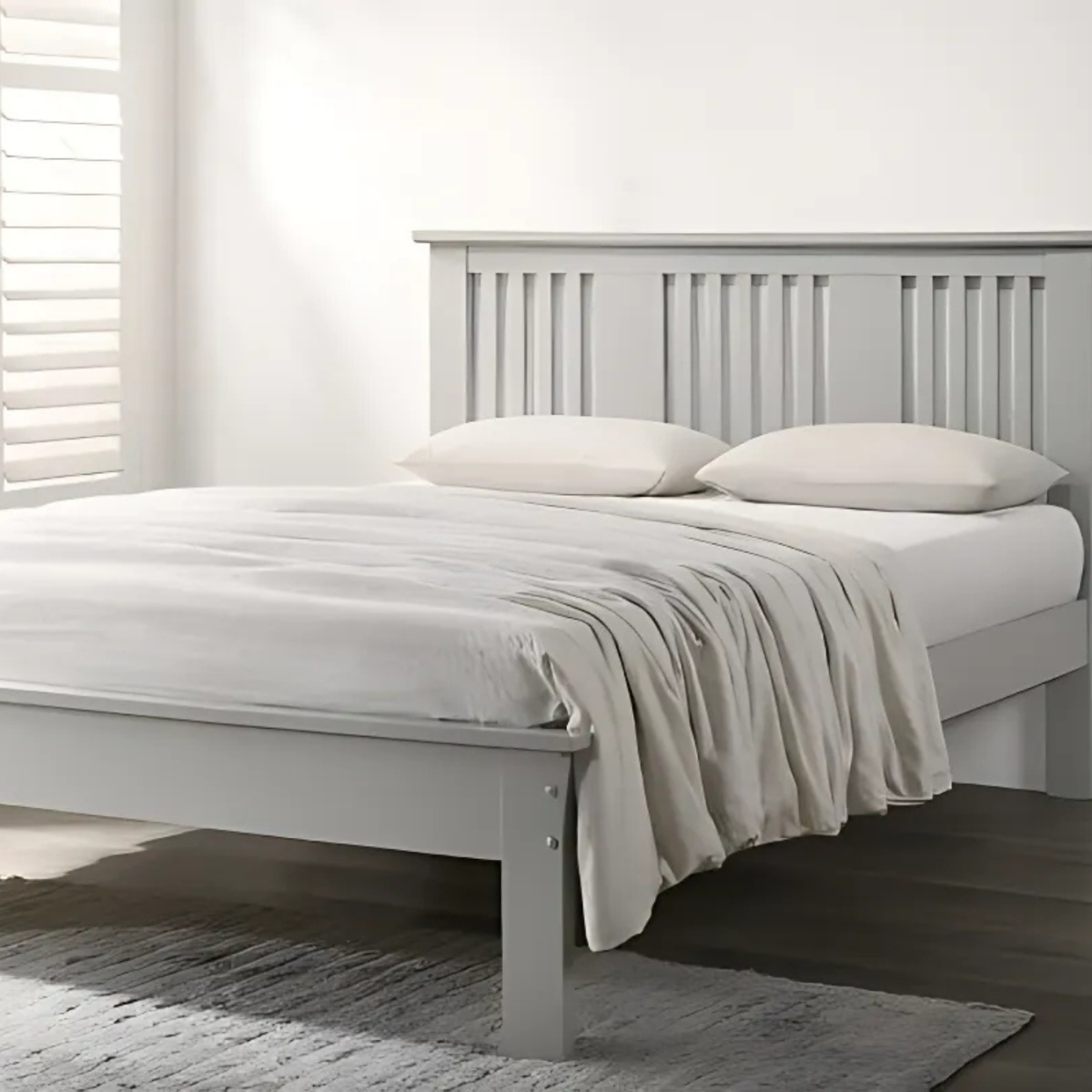 Reference: ALANAB46The Alana slatted bedframe in grey offers a clean, modern aesthetic with a touch of timeless charm. Designed with a classic slatted headboard, this bed brings subtle texture and definition to your space. Finished in a fresh grey semi-gloss, it brightens the room while seamlessly blending with a wide variety of interiors. With multiple size options available, the Alana bedframe is as versatile as it is stylish—perfect for creating a serene and sophisticated bedroom retreat.