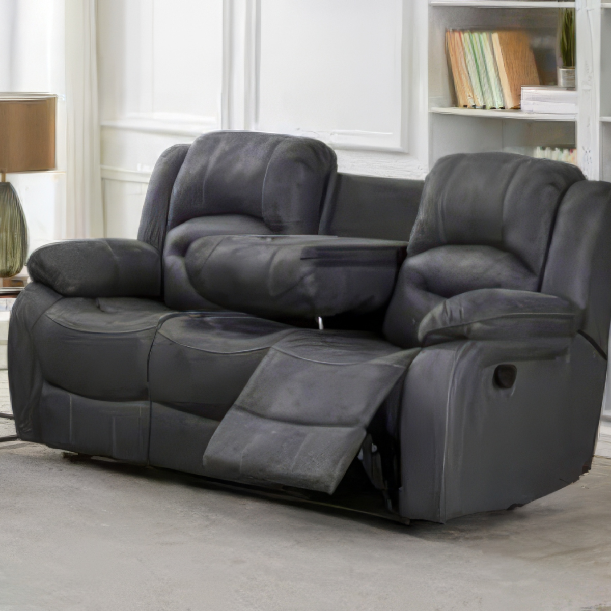 Sumptuous and inviting, the Alexandra Recliner Sofa Range in slate provides the perfect spot to unwind and relax. Upholstered in durable fabric with refined stitching along the edges, this range combines comfort with contemporary style. Each piece stands on dark, sturdy feet and features a smooth reclining mechanism for added luxury.