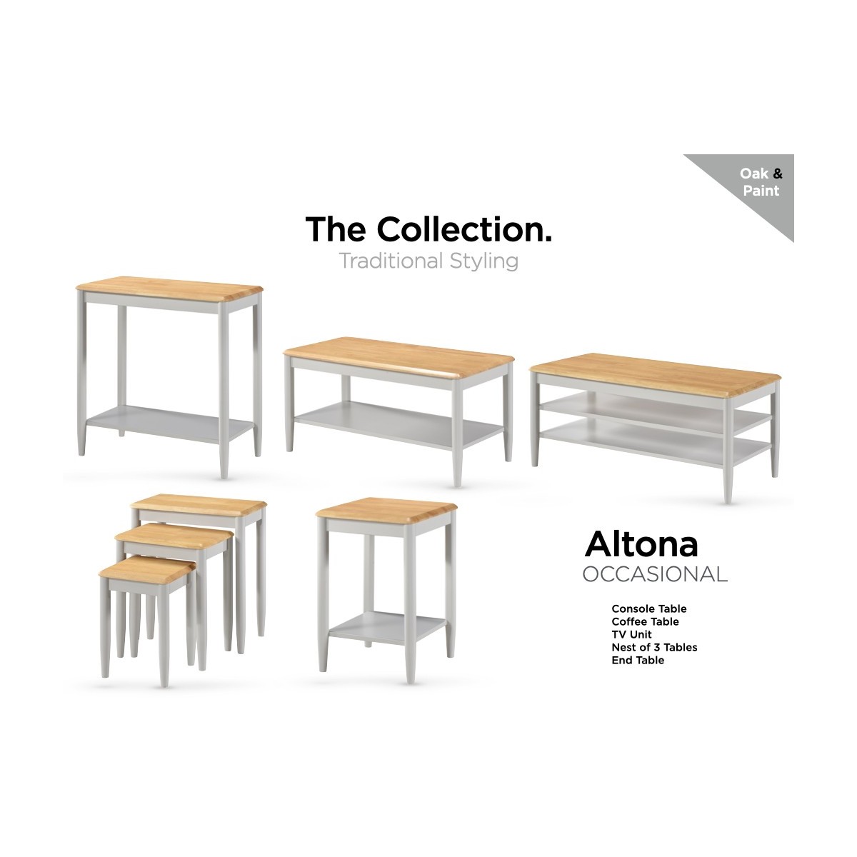 Reference: 15362Introducing the Altona range, a stylish and modern furniture collection featuring a painted grey finish with elegant light oak tops. This range effortlessly combines contemporary design with timeless appeal, making it a perfect addition to any home. Enhance your living space with the sophisticated charm and durable craftsmanship of the Altona range.