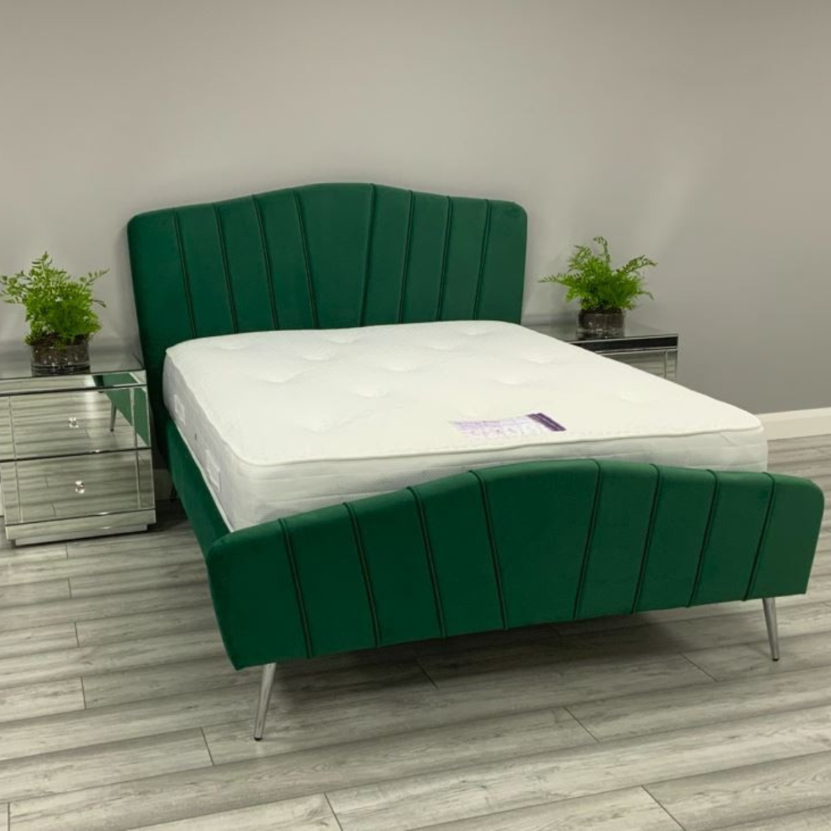 Reference: Biancagreen46The Anna bed is finished with a plush fabric, offering a soft-touch feel for extra comfort. With two color choices of green or grey, it’s the perfect bed to complement any modern décor. Its elegant design and luxurious feel make it a standout piece in any bedroom.