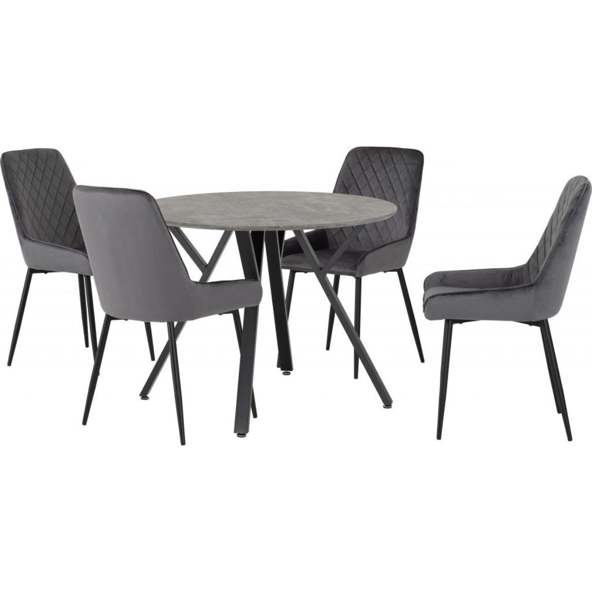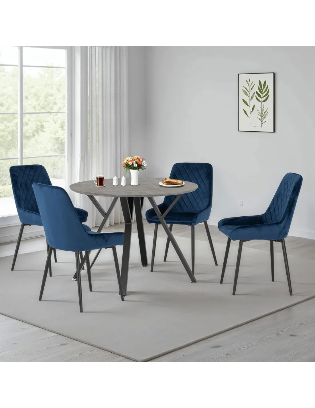 Athens Round Table & Avery Dining Set (x4 Chairs) - Concrete/Sapphire Blue Velvet
