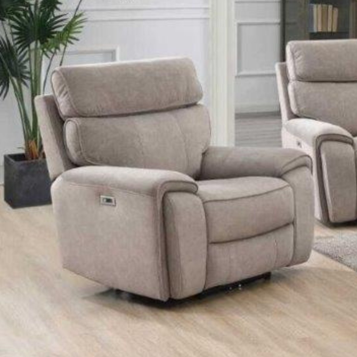 Reference: SHELDON1BEIGECompact yet comfortable, the Avenue Power Recliner Armchair brings effortless relaxation to any space. Upholstered in your choice of beige or grey, this armchair features a smooth reclining mechanism, soft cushioning, and a durable, solid frame – perfect for solo lounging.