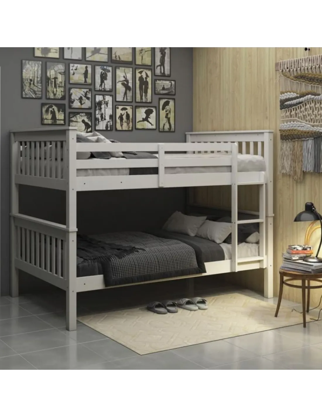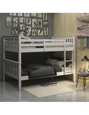Reference: BountybunkgreyThe Bounty Bunk Bed Range is a practical and stylish solution for any bedroom. Made from solid pine for exceptional durability, these beds are built to last. Available in grey or white finishes, they effortlessly complement any décor. Each bunk can be easily separated into two individual beds, providing maximum versatility. For the best comfort and safety, a mattress height of 18cm (sold separately) is recommended. Whether used as a space-saving bunk or as standalone beds, the Bounty Range perfectly combines functionality with timeless design.