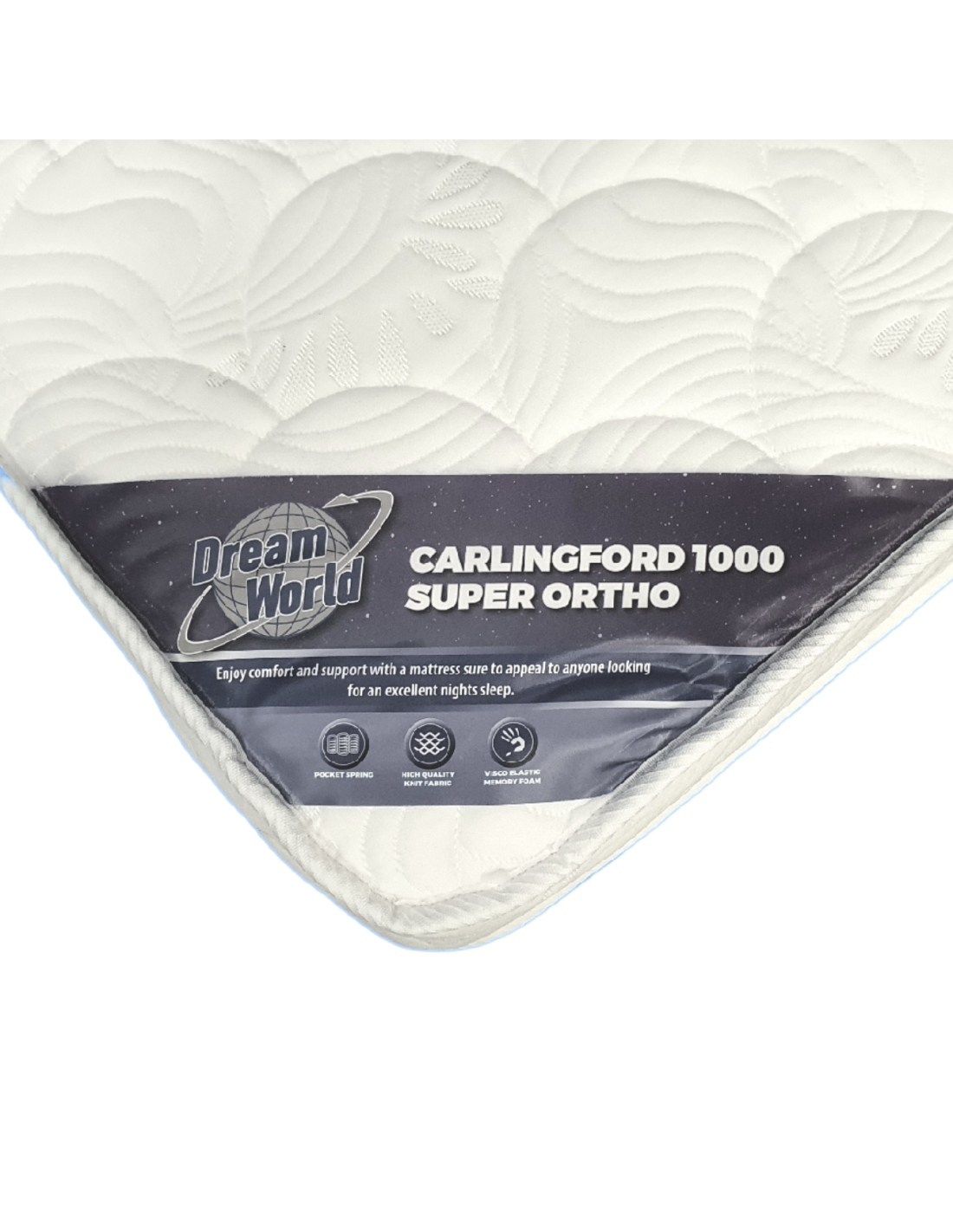 Indulge in both comfort and support with the Carlingford 1000 Super Ortho mattress, designed to provide an excellent night's sleep. This mattress offers a perfect blend of plush comfort and orthopedic support, ensuring a restful and rejuvenating sleep experience for anyone seeking superior quality.