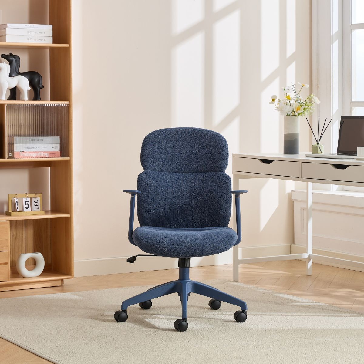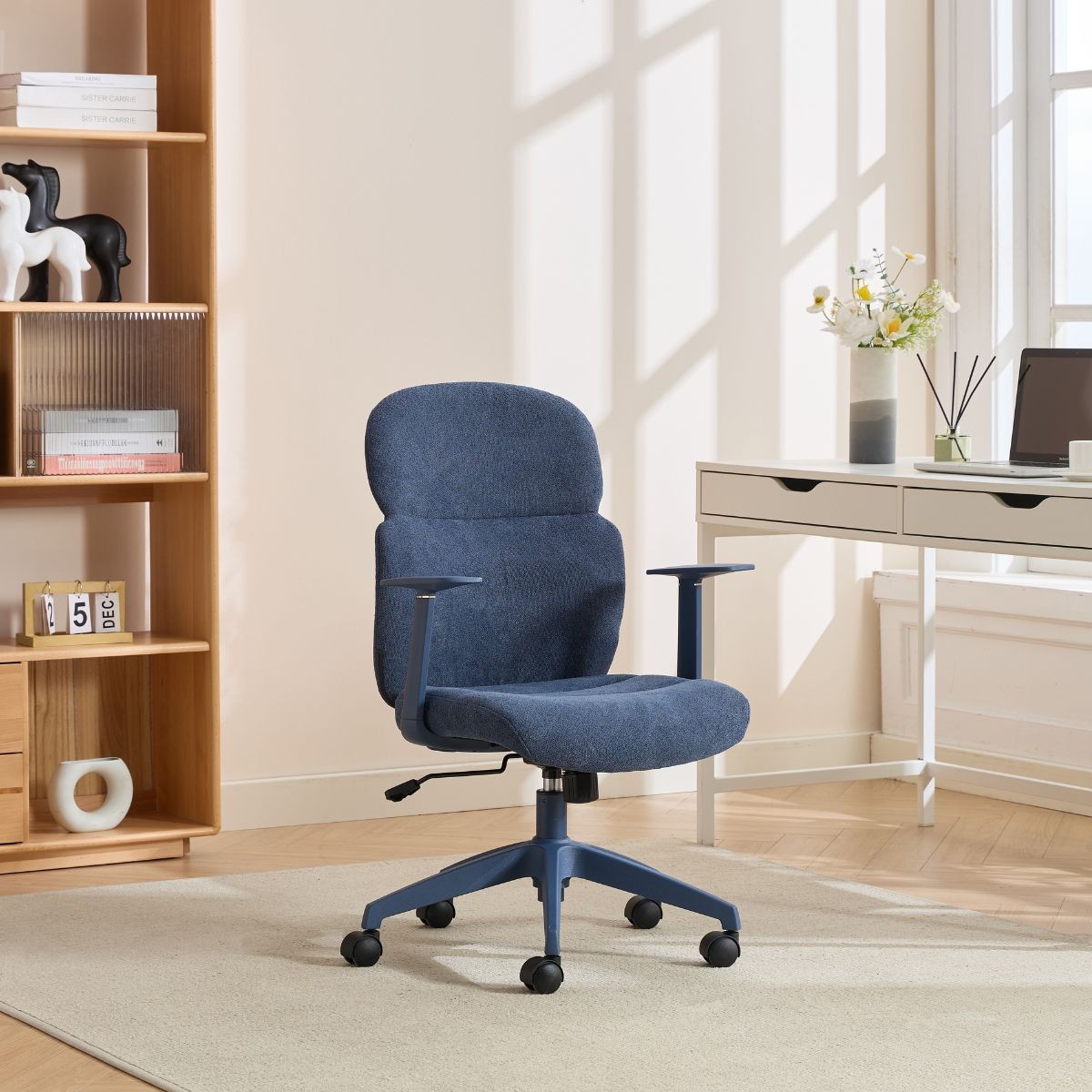 Reference: CrestonofficechairblueThe Colmay Office Chair combines simplicity with comfort, making it a perfect addition to any home office. Designed with a foam interior cushioning, it delivers superior support for long working hours, ensuring you stay comfortable and focused. Its clean, modern design fits seamlessly into a variety of interiors, offering both style and practicality.