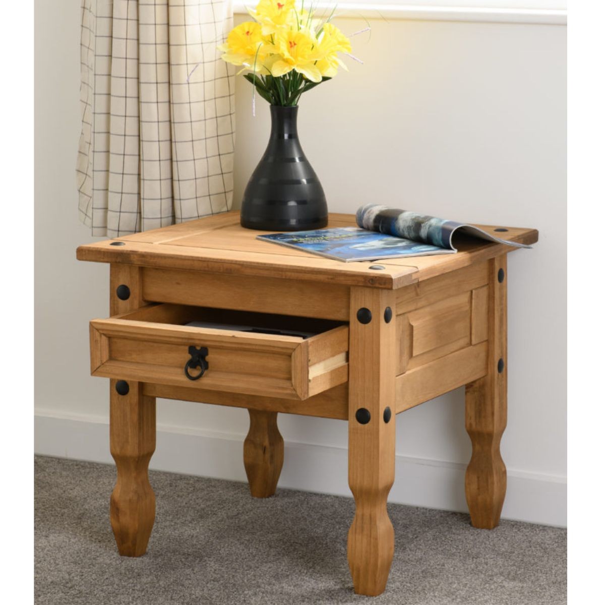 Corona 1 Drawer Lamp Table - Distressed Waxed Pine