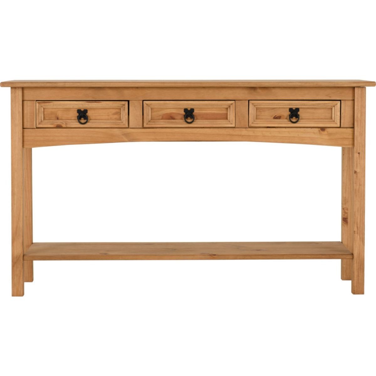 Corona 3 Drawer Console Table With Shelf - Distressed Waxed Pine