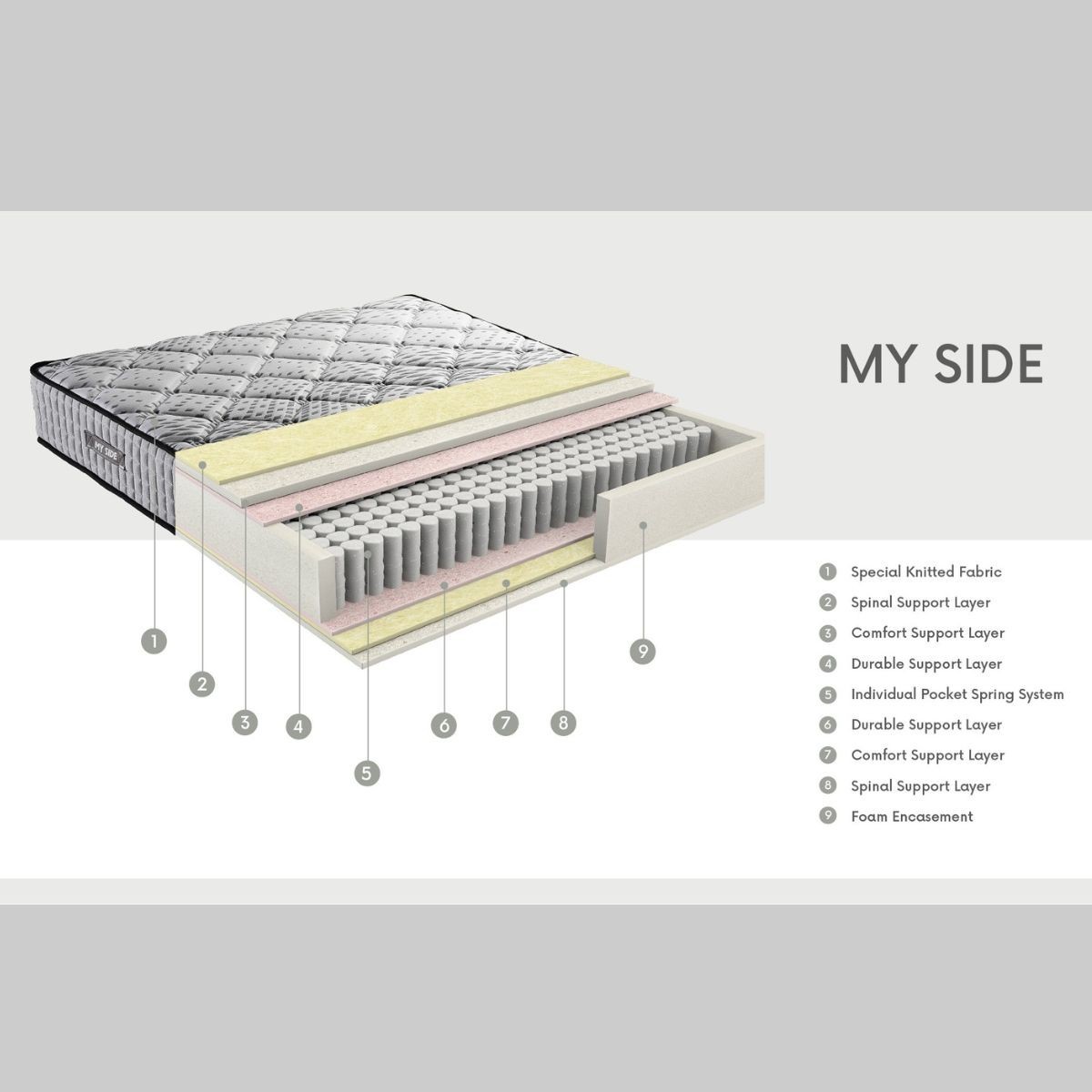 Designed for adaptive comfort, the Dormolito My Side Mattress features advanced smart spring technology that responds to pressure variations, providing tailored support in any sleep position. Its ergonomic design reduces strain on the body, making it an excellent choice for those with moderate back and neck discomfort. Crafted with high-quality materials, this mattress ensures long-lasting comfort, durability, and a rejuvenating night's rest.