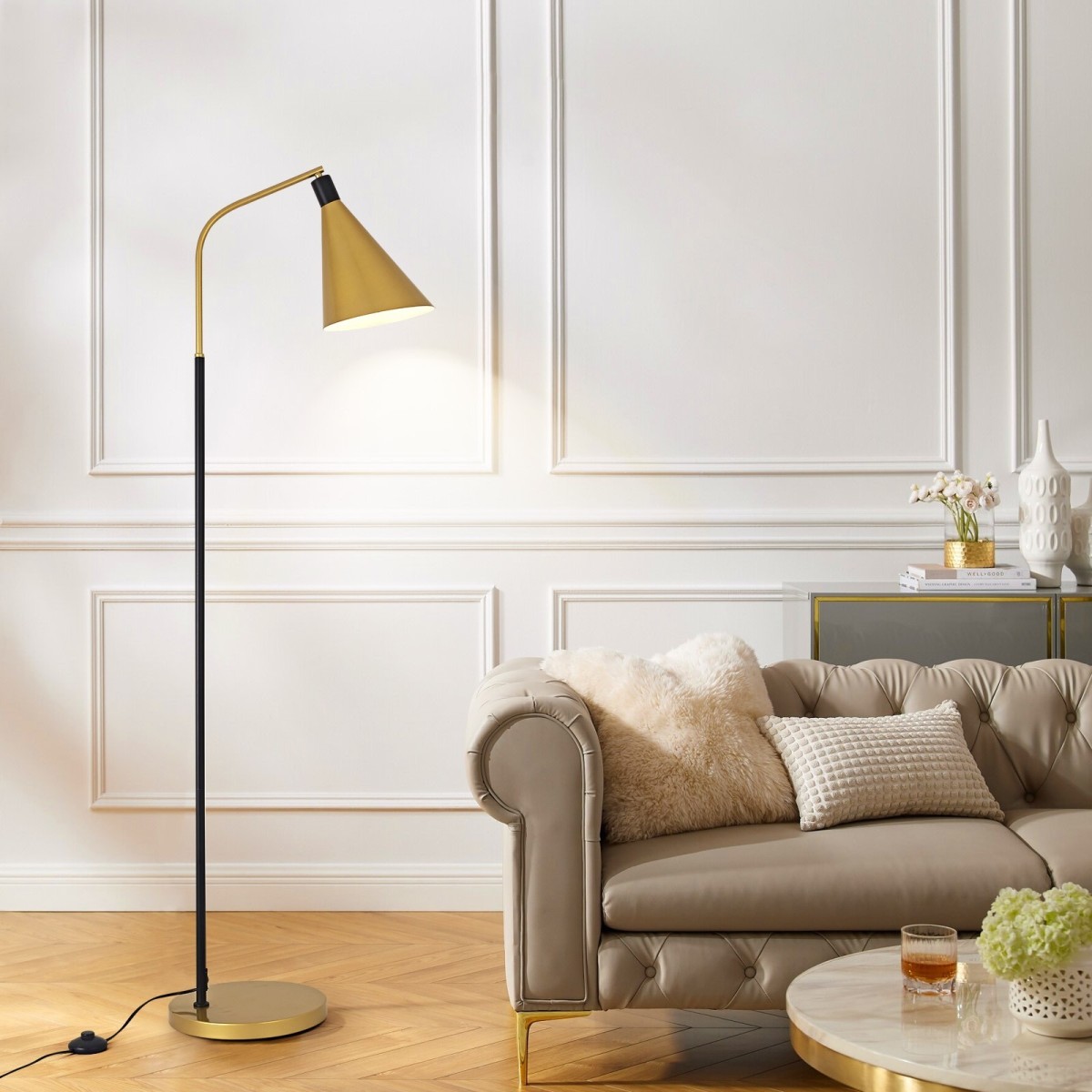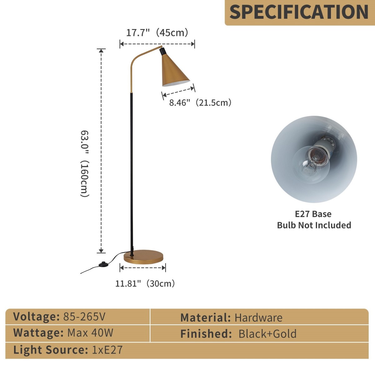 Reference: F209029 LampIntroducing the F209029 Lamp, a towering testament to modern elegance and refined style. With its commanding presence and sleek gold and black colour finish, this tall standing lamp instantly captivates the eye, adding a touch of luxury to any space. The modern design is accentuated by a sophisticated gold base, exuding opulence and sophistication.