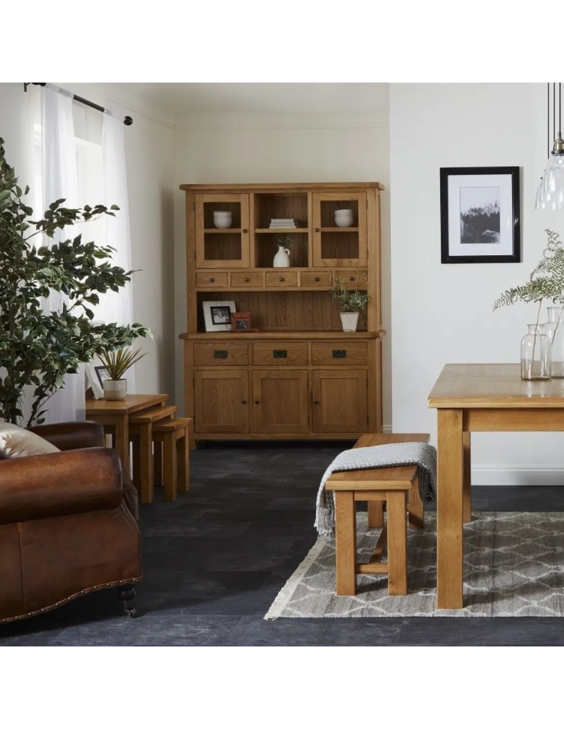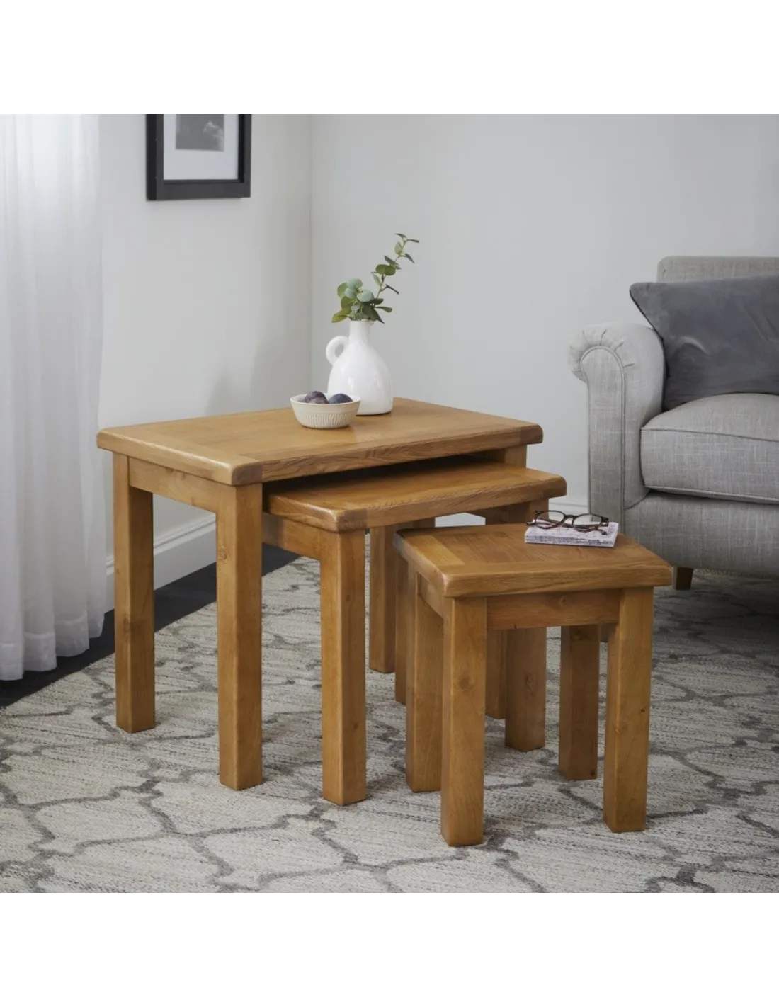 Reference: G2123KDCrafted with a warm wax finish, this nest of tables brings a touch of rustic charm to any living space. Part of the versatile Astoria collection, these tables offer both practicality and timeless style. The slightly rustic finish enhances the natural beauty of the oak, making them a perfect fit for any home. Designed for convenience, they provide additional surface space when needed and neatly nest together to save space.