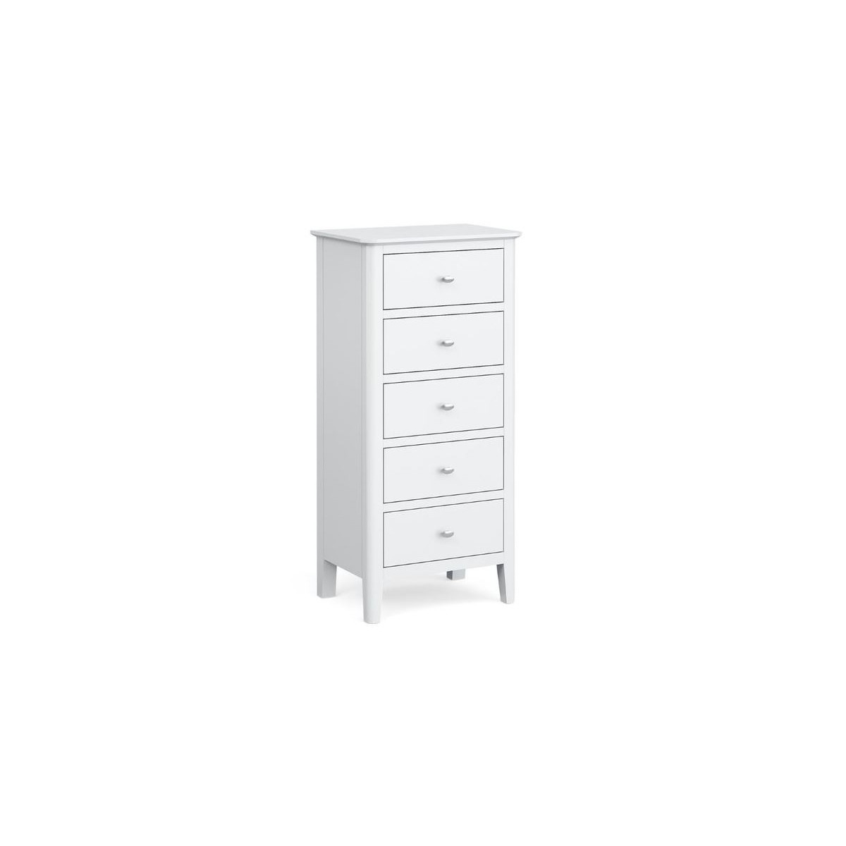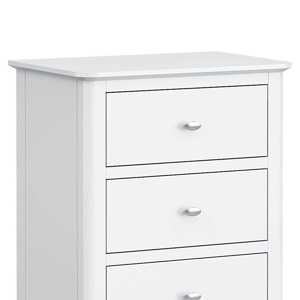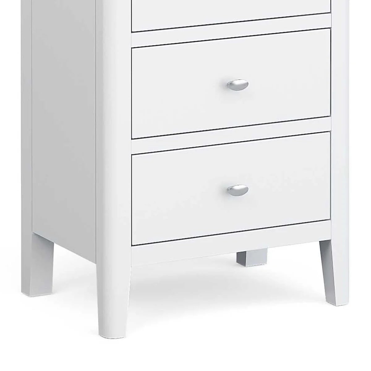 Reference: G4770The Ferndale range is a relaxed, modern bedroom collection that blends elegance with simplicity through clean lines and gentle curves. Finished in a multi-layer, high-quality white paint, each piece offers lasting durability while maintaining a soft, refined look. With tapered legs and posts, the collection delivers a subtle yet sophisticated aesthetic that pairs beautifully with creamy neutrals and earthy tones for a calm, contemporary bedroom space.