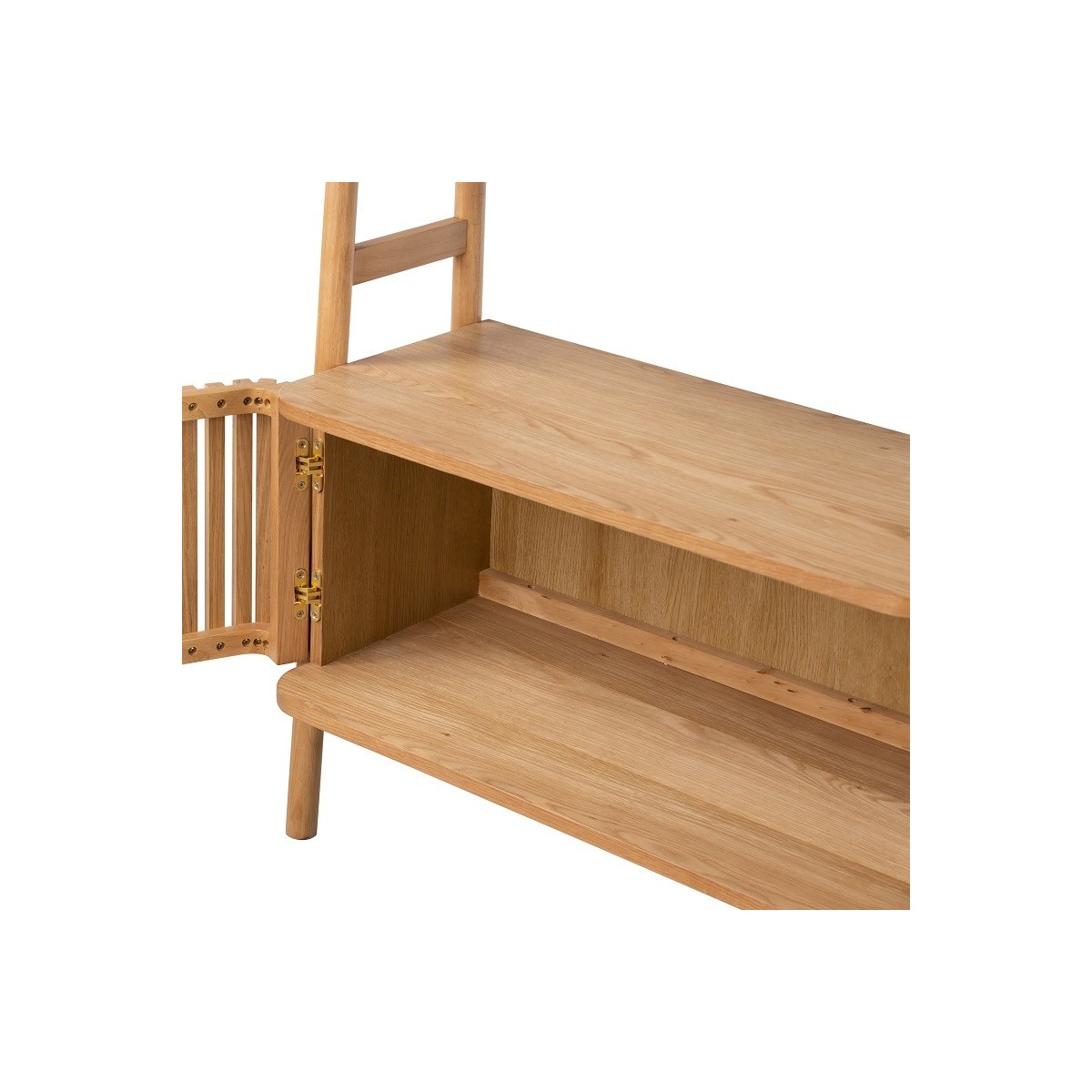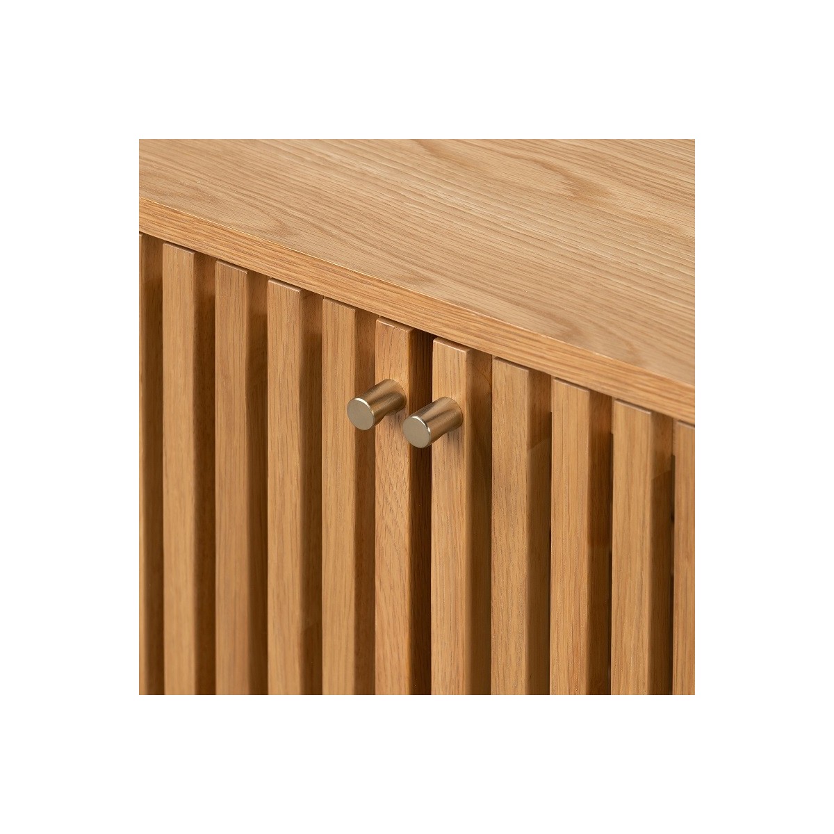 Reference: G7736The Boardwalk range is a masterclass in contemporary design, blending natural materials and clean lines to create timeless, versatile pieces. The straight slatted front contrasts beautifully with gentle curved edges, adding a sense of lightness and texture. The slatted door feature creates a distinctive finish that will stand out in your living space. Beautifully simple gold handles bring the range to life while maintaining a minimalist and streamlined frame.