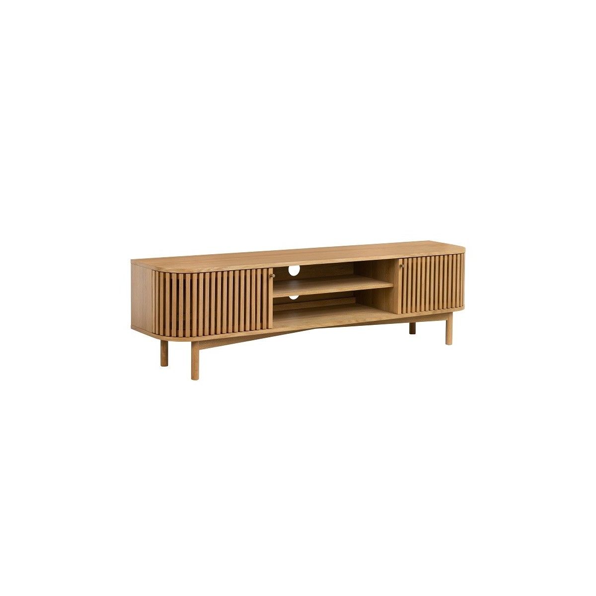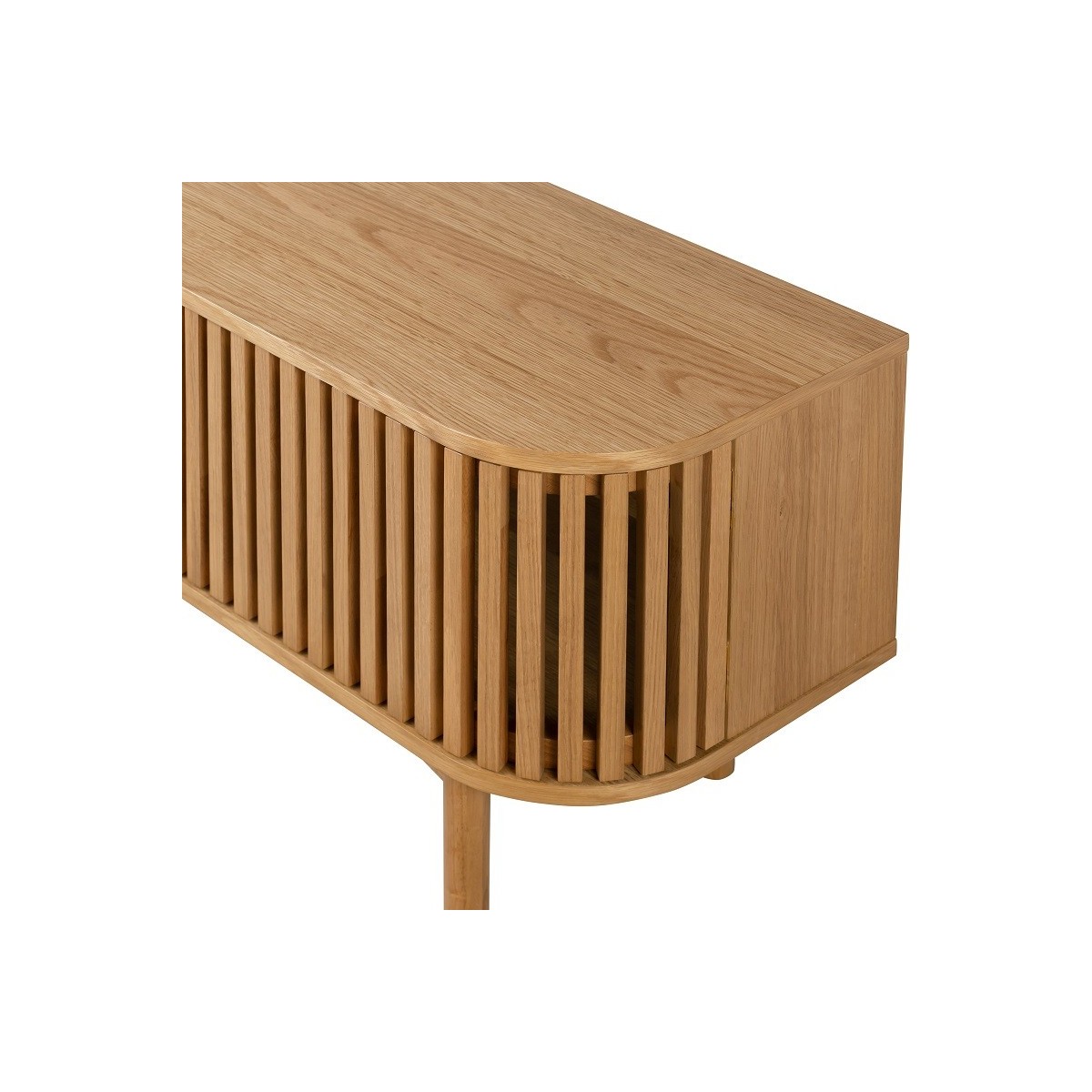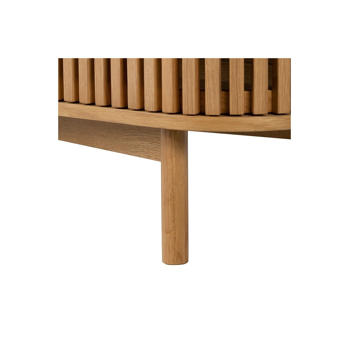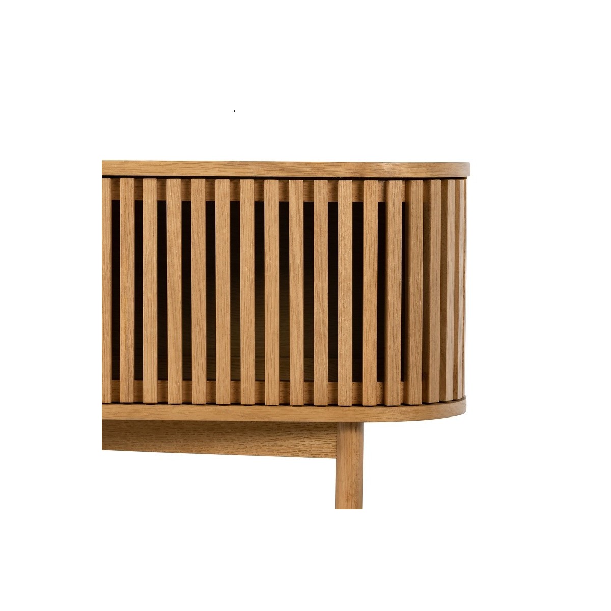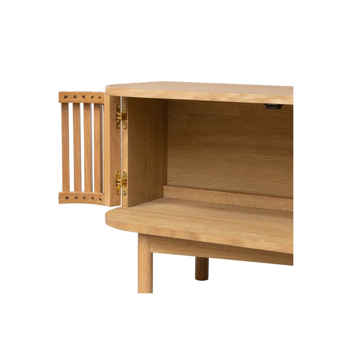 Reference: G7739The Boardwalk range is a masterclass in contemporary design, blending natural materials and clean lines to create timeless, versatile pieces. The straight slatted front contrasts beautifully with gentle curved edges, adding a sense of lightness and texture. The slatted door feature creates a distinctive finish that will stand out in your living space. Beautifully simple gold handles bring the range to life while maintaining a minimalist and streamlined frame.