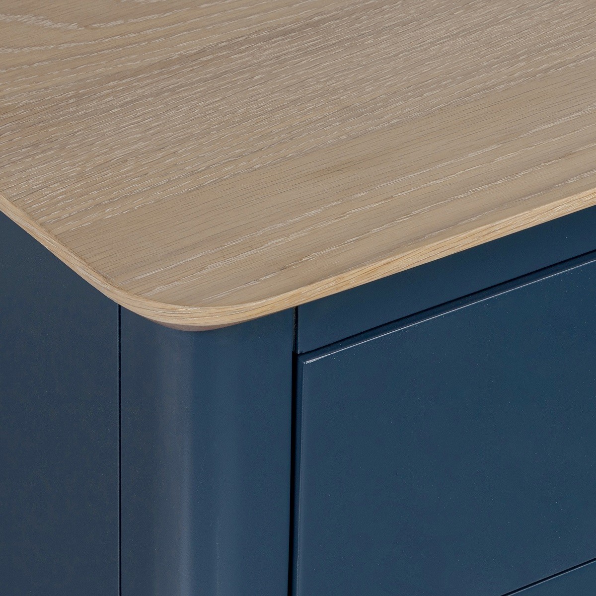 Reference: G8243The Marlow range features a beautifully painted finish paired with oak tops, available in two elegant colours – coconut white or navy. The oak tops are treated with a durable white wash oil, giving the collection a soft and refined aesthetic. Designed with gentle curves and tapered legs, this range brings both style and functionality to any space. With a variety of pieces available, Marlow offers versatile options to suit different rooms and needs.