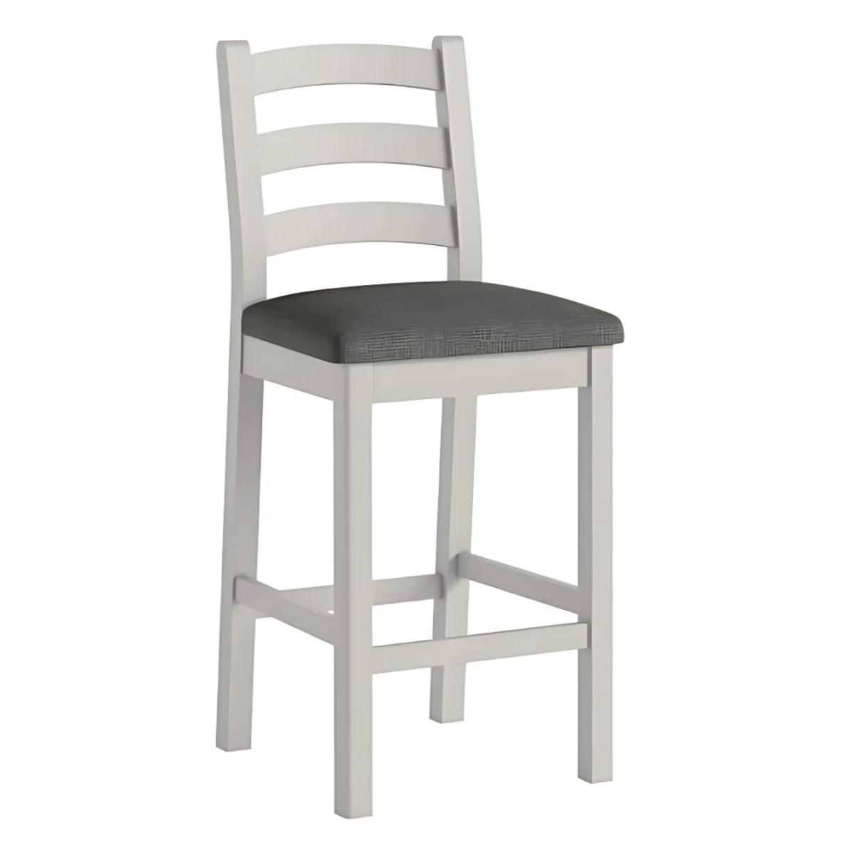 Reference: G8304The Marbury Bar Stool in Light Grey offers a perfect balance of timeless elegance and modern design. As part of the beautifully crafted Marbury Range, this bar stool is finished in a soft, light grey tone and topped with a durable, white-washed oak seat that brings natural texture and warmth to your space. The smooth oil finish on the oak seat highlights the grain, softening the overall look and creating a calm, inviting feel suited to both classic and contemporary interiors. With its sturdy frame, chunky legs, and thick oak seat, the Marbury Bar Stool is built for both style and everyday use. Its generous height makes it an ideal companion for kitchen islands, breakfast bars, or relaxed dining areas. Whether you're refreshing a traditional kitchen or adding a subtle rustic touch to a modern setting, the Marbury Bar Stool in Light Grey brings comfort, character, and versatility into your home. Pair it with the coordinating Marbury Bar Table for a cohesive and stylish bar setting. Whether you’re updating a country kitchen or adding a rustic touch to a modern home, the Marbury Bar Stool in light grey brings character, function, and timeless style.